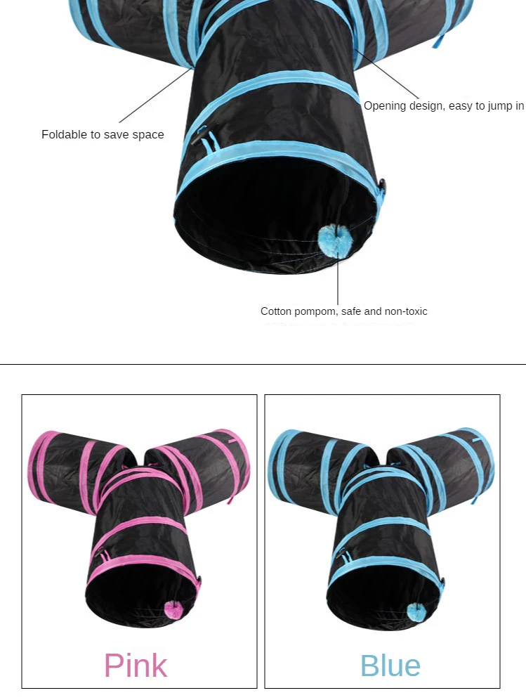 Игровой тоннель для кошек, Складная гофрированная трубка с 2 отверс...