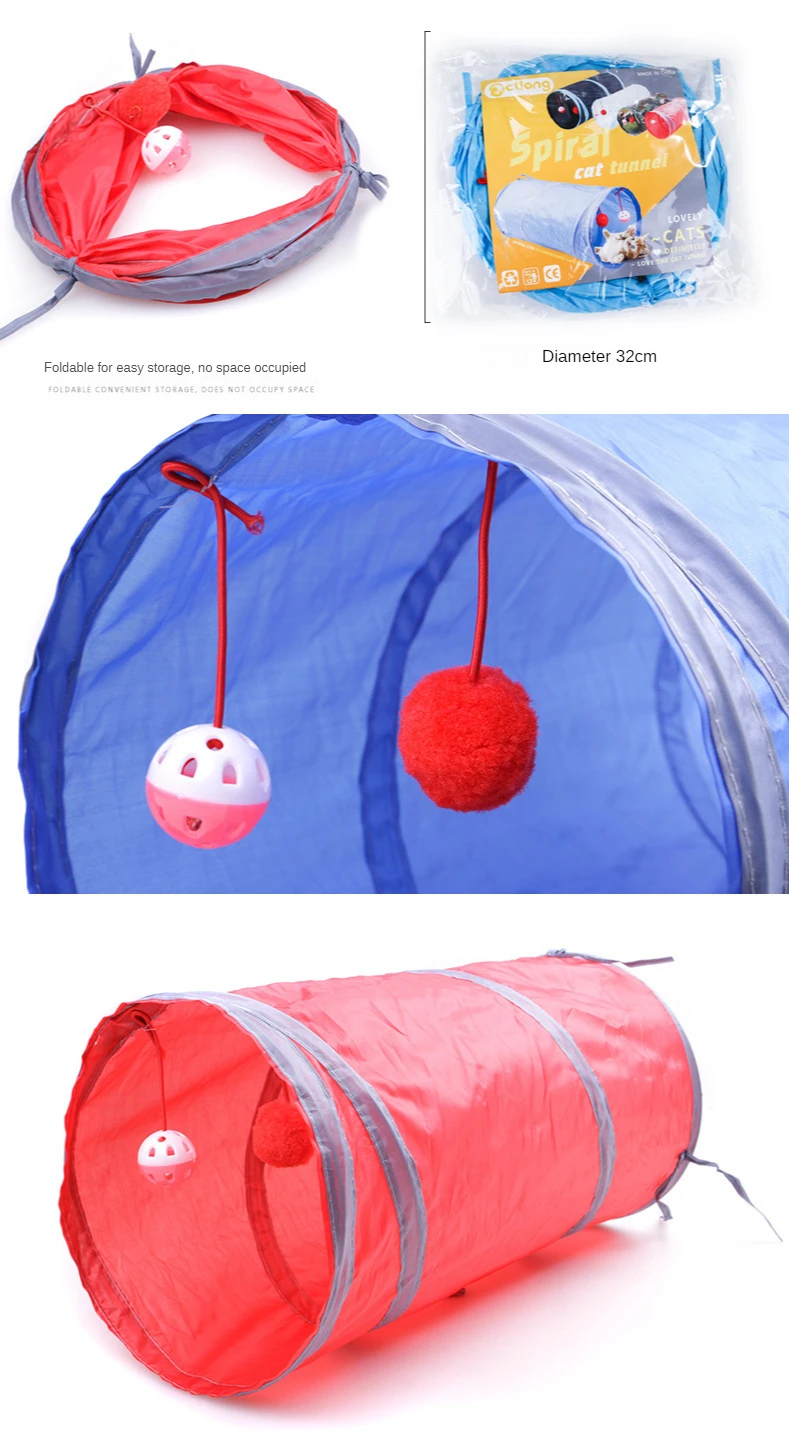 7 цветов, Забавный туннель для кошек, 2 отверстия, игровые мячи, ск...
