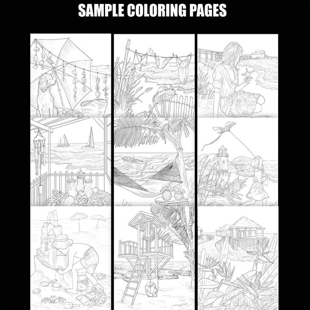 Красивый детальный дизайн пляжного отдыха-Наслаждайтесь часами медитативной релаксации, оживляя спокойный пляж и летние сцены