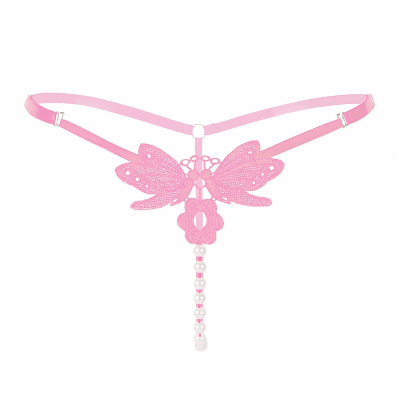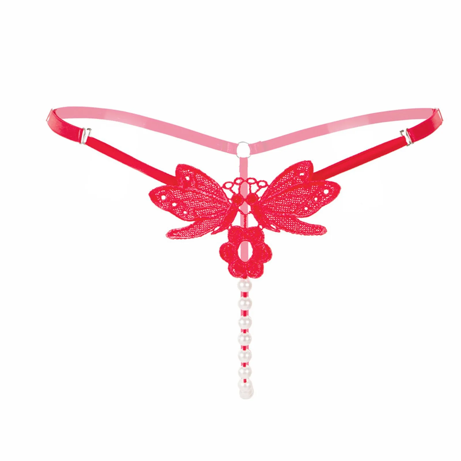 Женские кружевные трусики без косточек, стринги с жемчугом, массажное нижнее белье