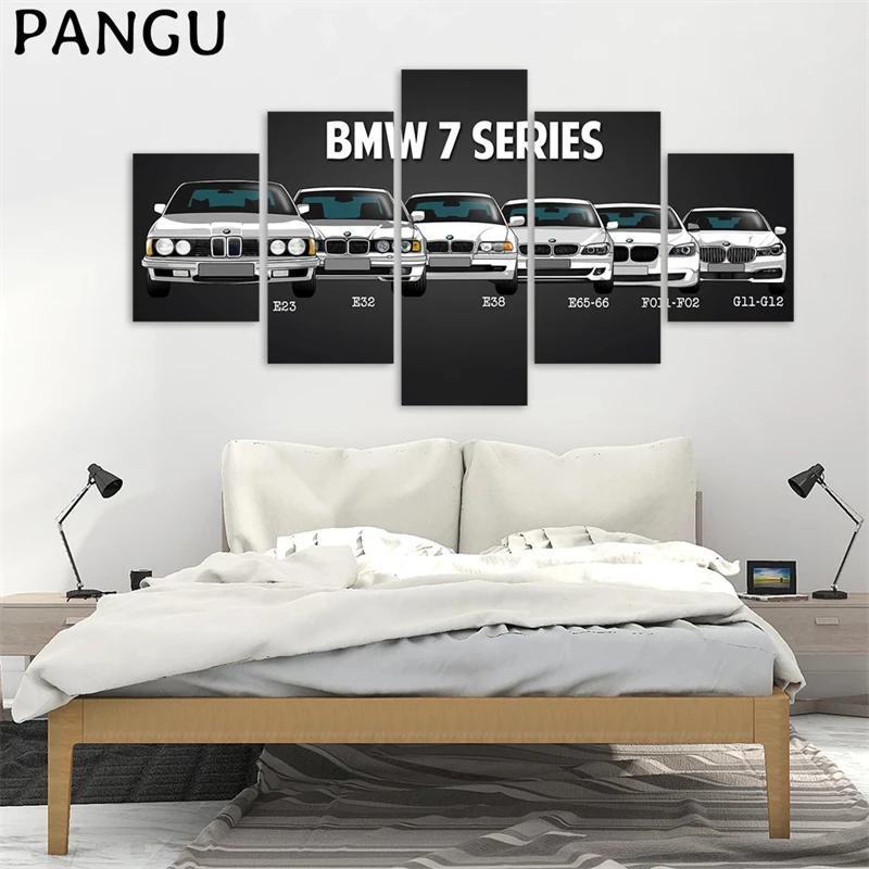 Постер на холсте для украшения дома, 5 шт., Hd Bmw M7, белая спортивная живопись автомобиля, настенное искусство, картина для гостиной, модульная рамка