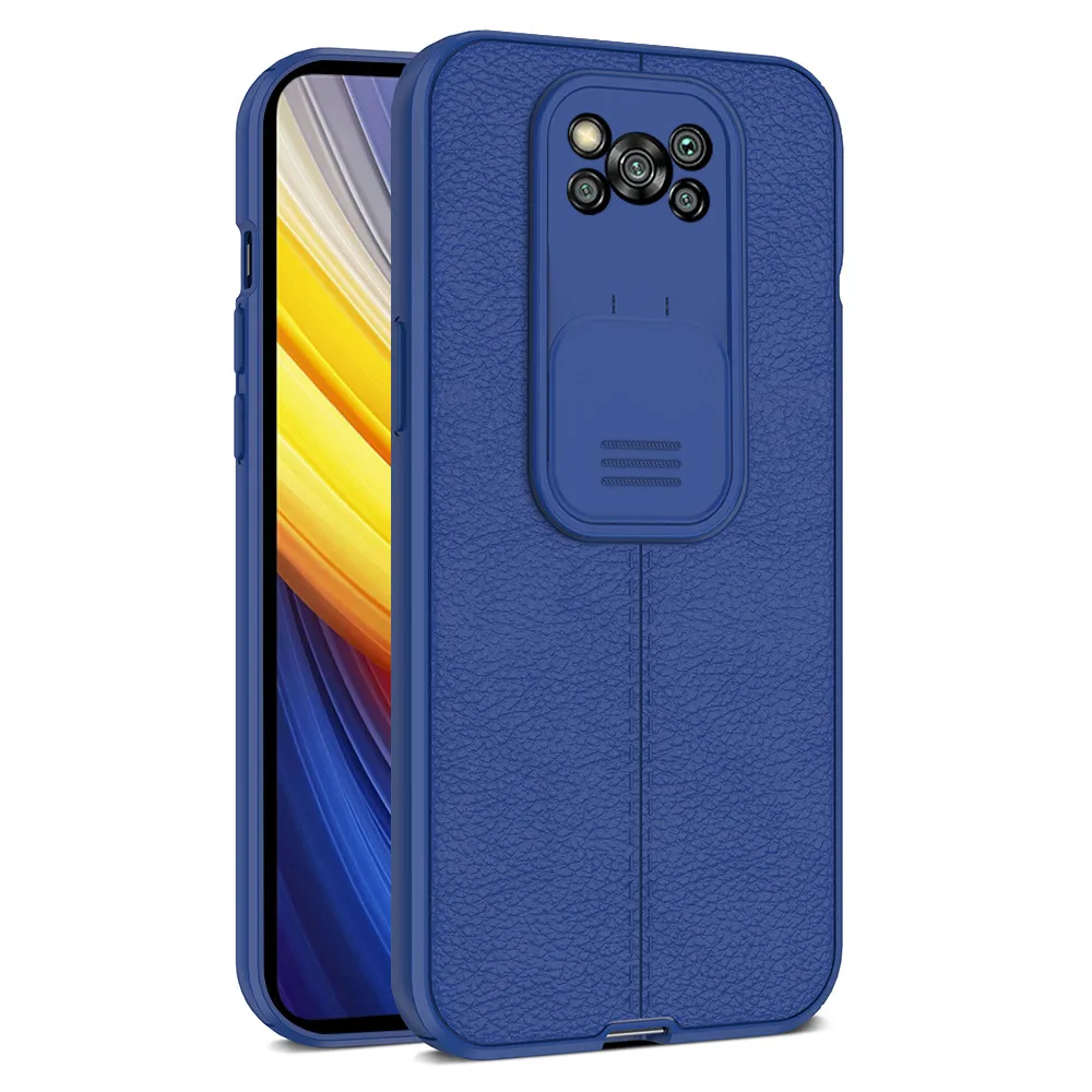 Защитный чехол с нажимной камерой для Xiaomi Poco X3 Pro, кожаный ч...
