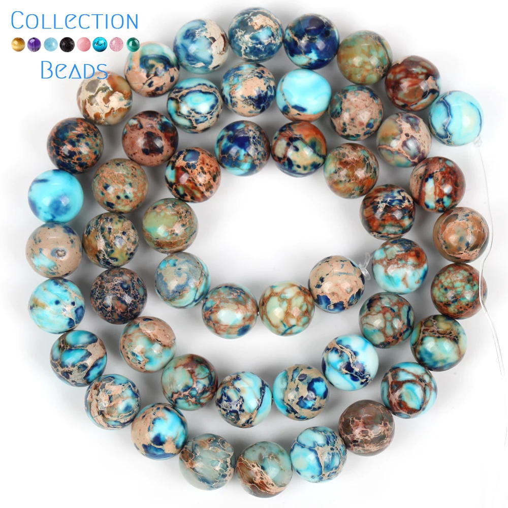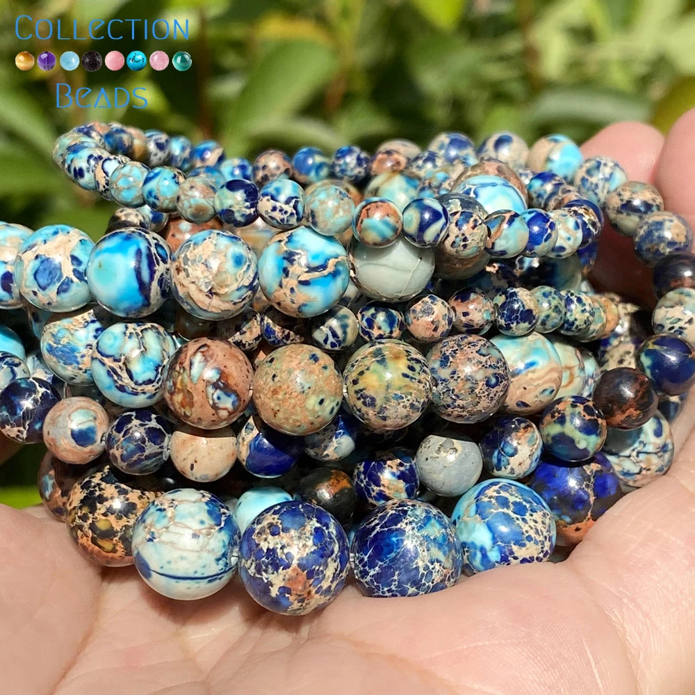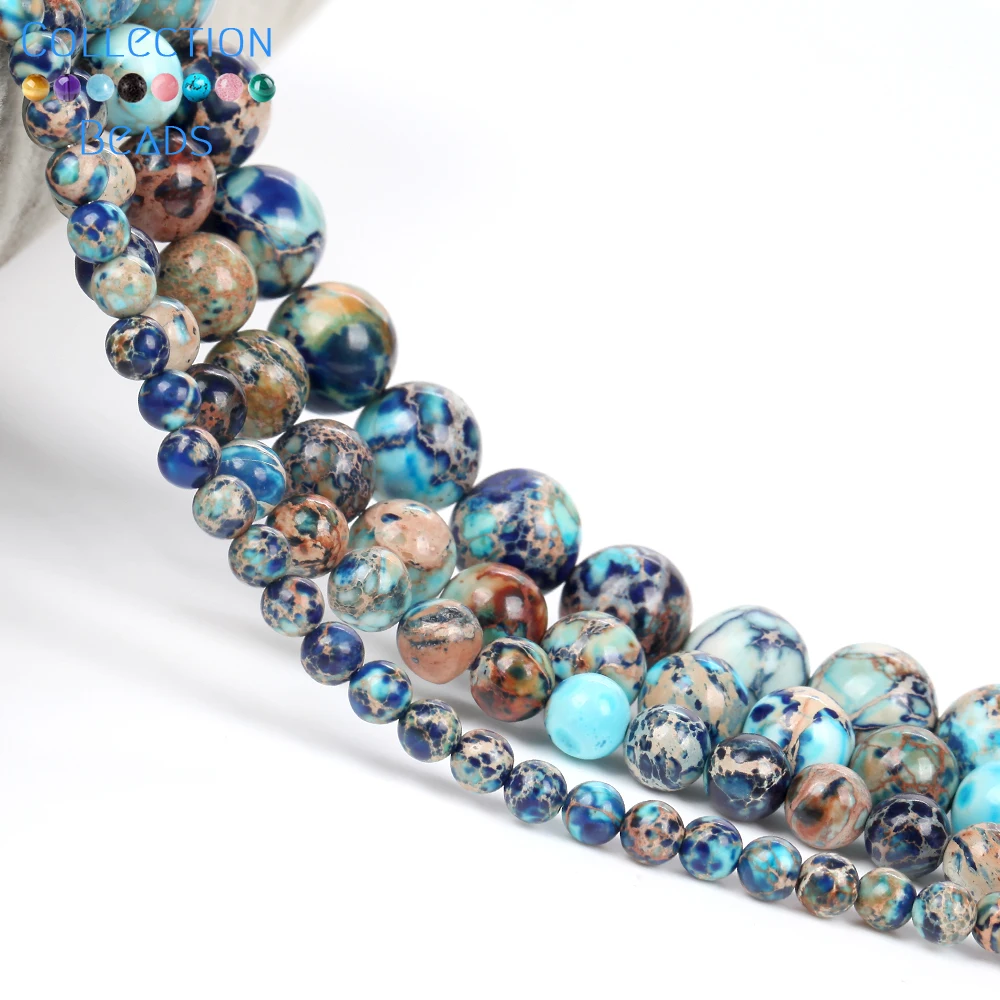 Круглые бусины из натурального камня, 4, 6, 8, 10 мм, голубое золото, морской осадок, яшма, бирюза, Аксессуары для браслета для самостоятельного изготовления ювелирных изделий