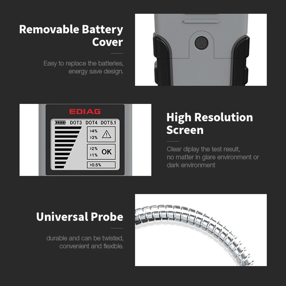 Тестер тормозной жидкости EDIAG BF100 BF200 с высоким разрешением и...