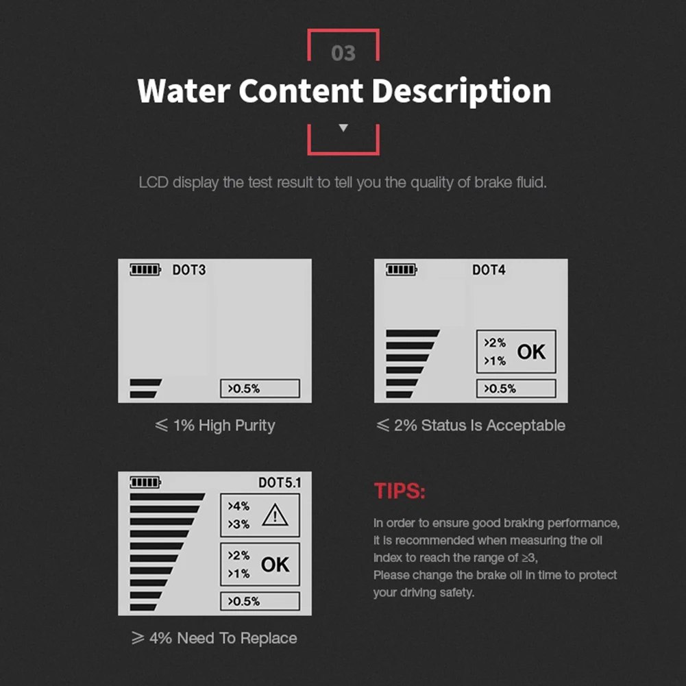Универсальный тестер тормозной жидкости, светодиодный дисплей для D...