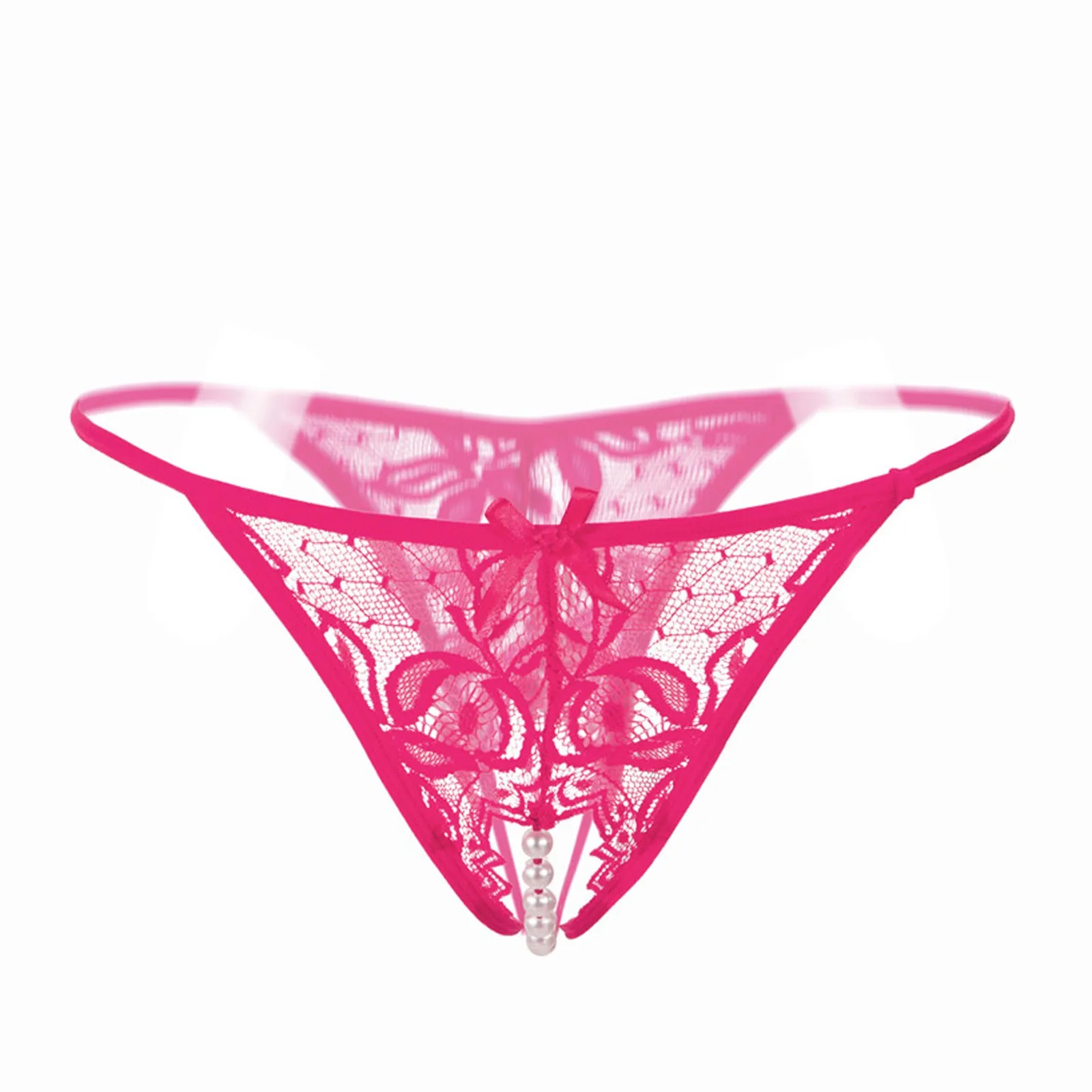 Женские кружевные трусики с вырезами, стринги с жемчугом, массажное нижнее белье