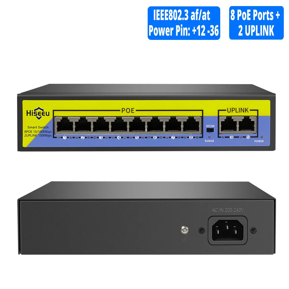 Hiseeu 48 в 8 портов POE коммутатор с Ethernet 10100 Мбитс IEEE 802...