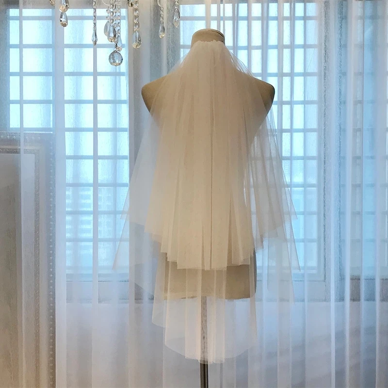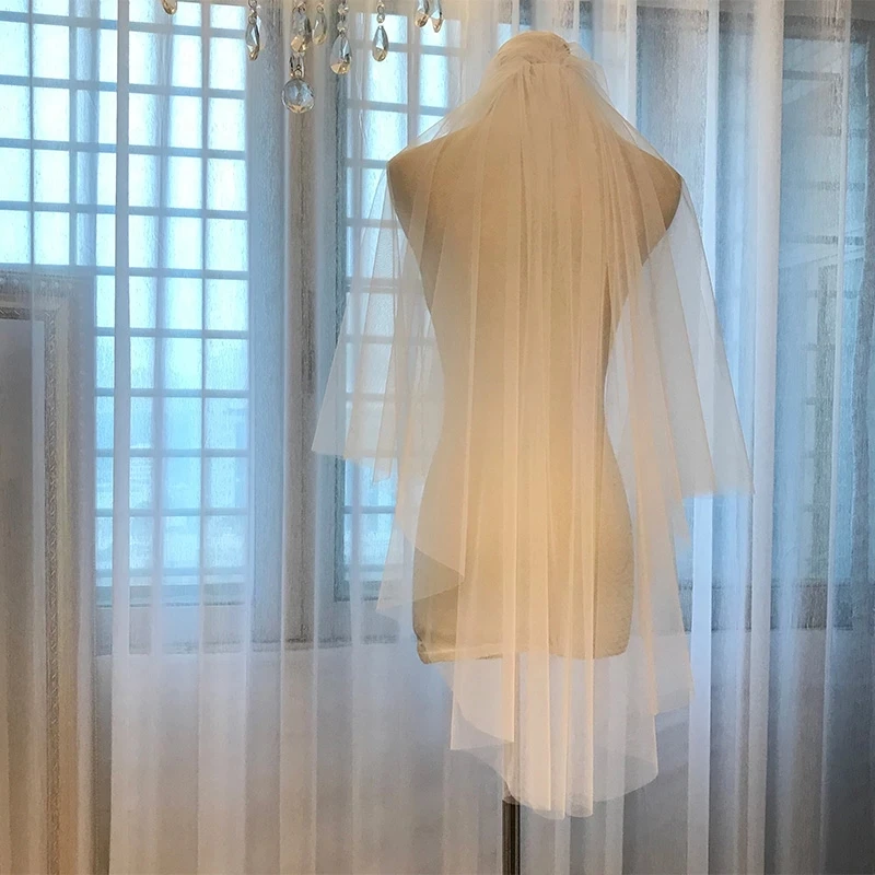 Фата свадебная двухслойная с гребнем, элегантная Мягкая сетчатая, Белыйцвет слоновой кости, аксессуары для невесты