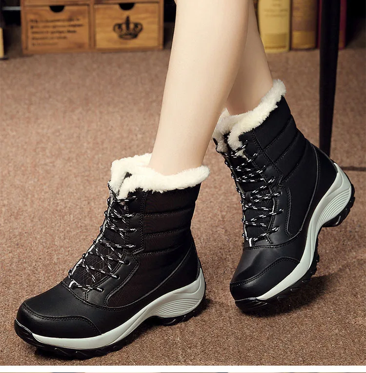 Ботинки женские зимние, теплые, водонепроницаемые, со шнуровкой