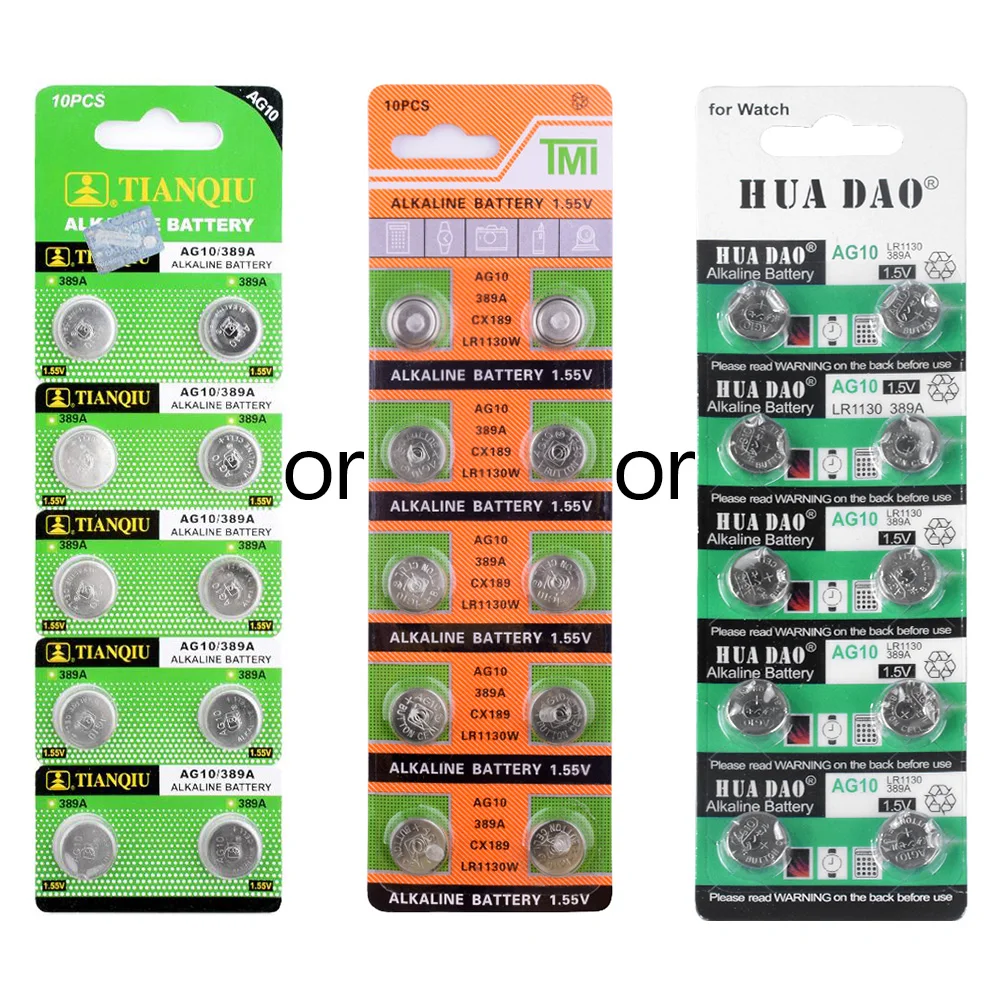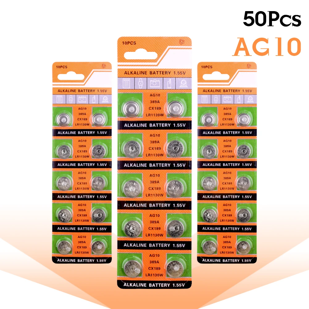 50 шт. кнопочная монетная Батарея AG10 1,5 V часы батареи SR54 389 189 LR1130 SR1130 для игрушки пульт дистанционного управления