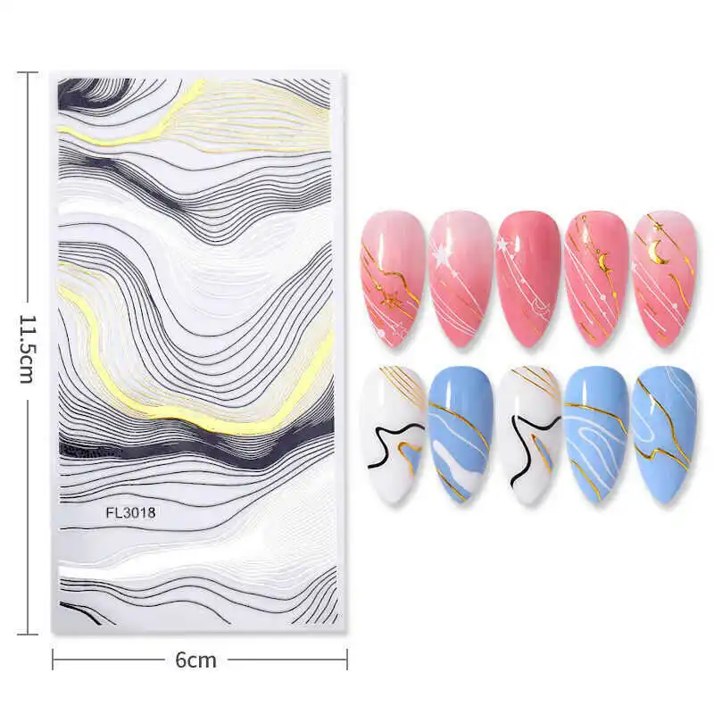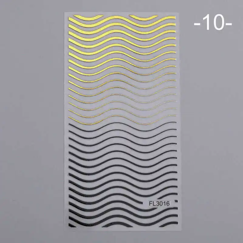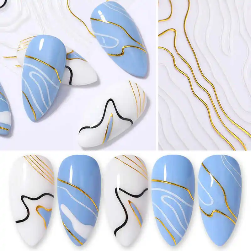Декоративные 3D наклейки для ногтей в полоску, позолоченные зеркальные Переводные волны, дизайн ногтей