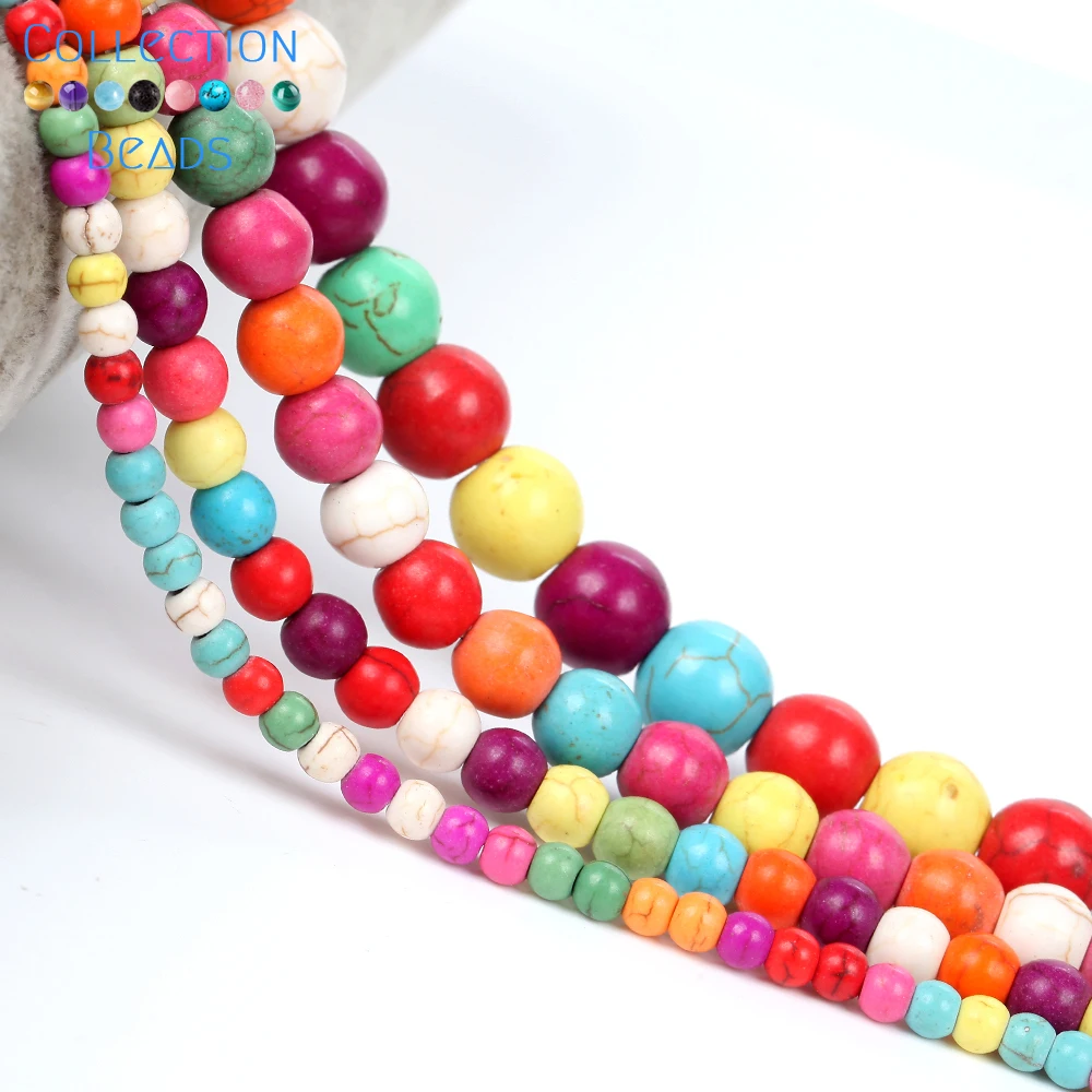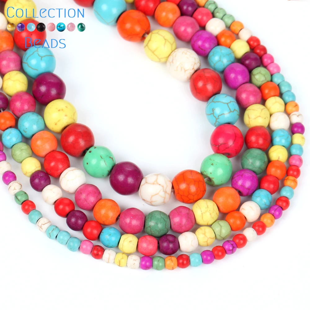 4 6 8 10 мм бусины из натурального камня цветные бирюзовые круглые свободные бусины для самостоятельного изготовления ювелирных изделий Аксессуары для браслетов 15''