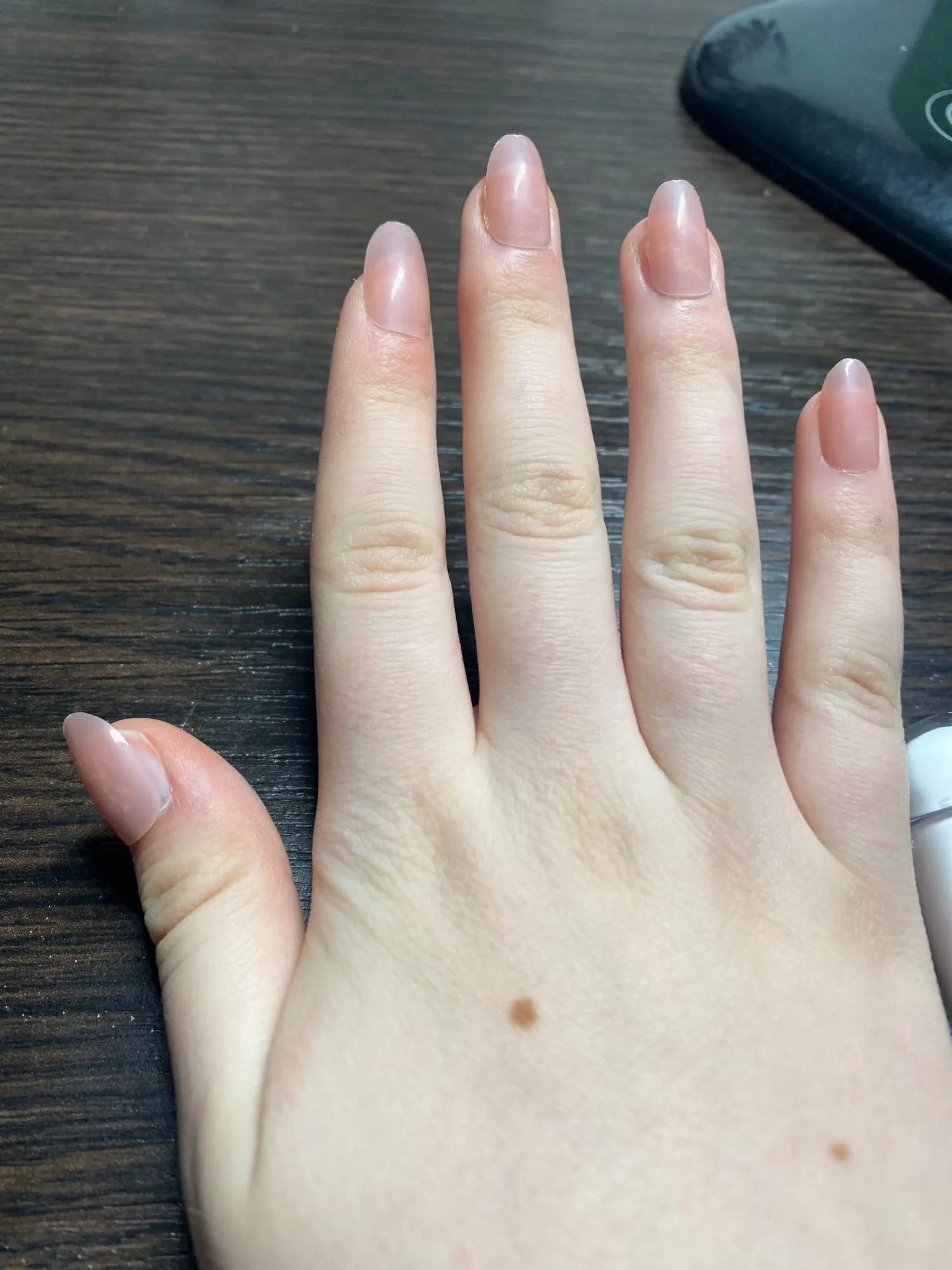 Накладные ногти с градиентным мраморным покрытием телесного цвета