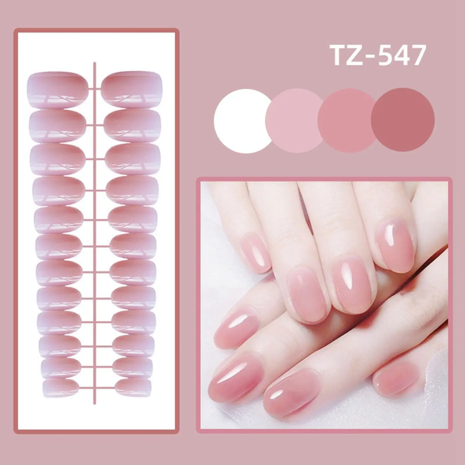 24 шт., накладные ногти розового цвета с полным покрытием