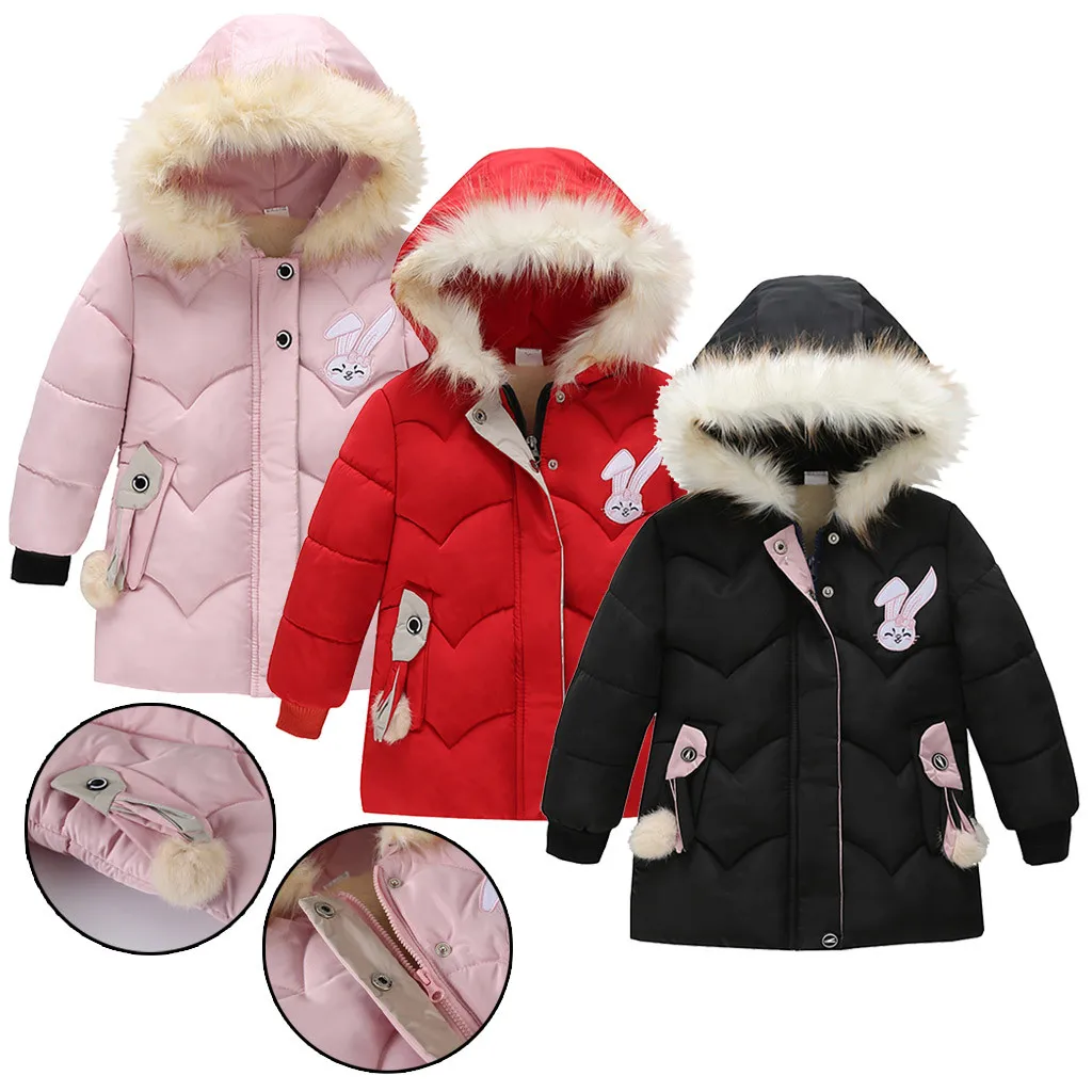 Детский Зимний пуховик с капюшоном и рисунком для маленьких девочек; Куртка; Верхняя одежда; Одежда с подкладкой