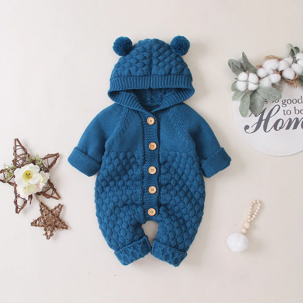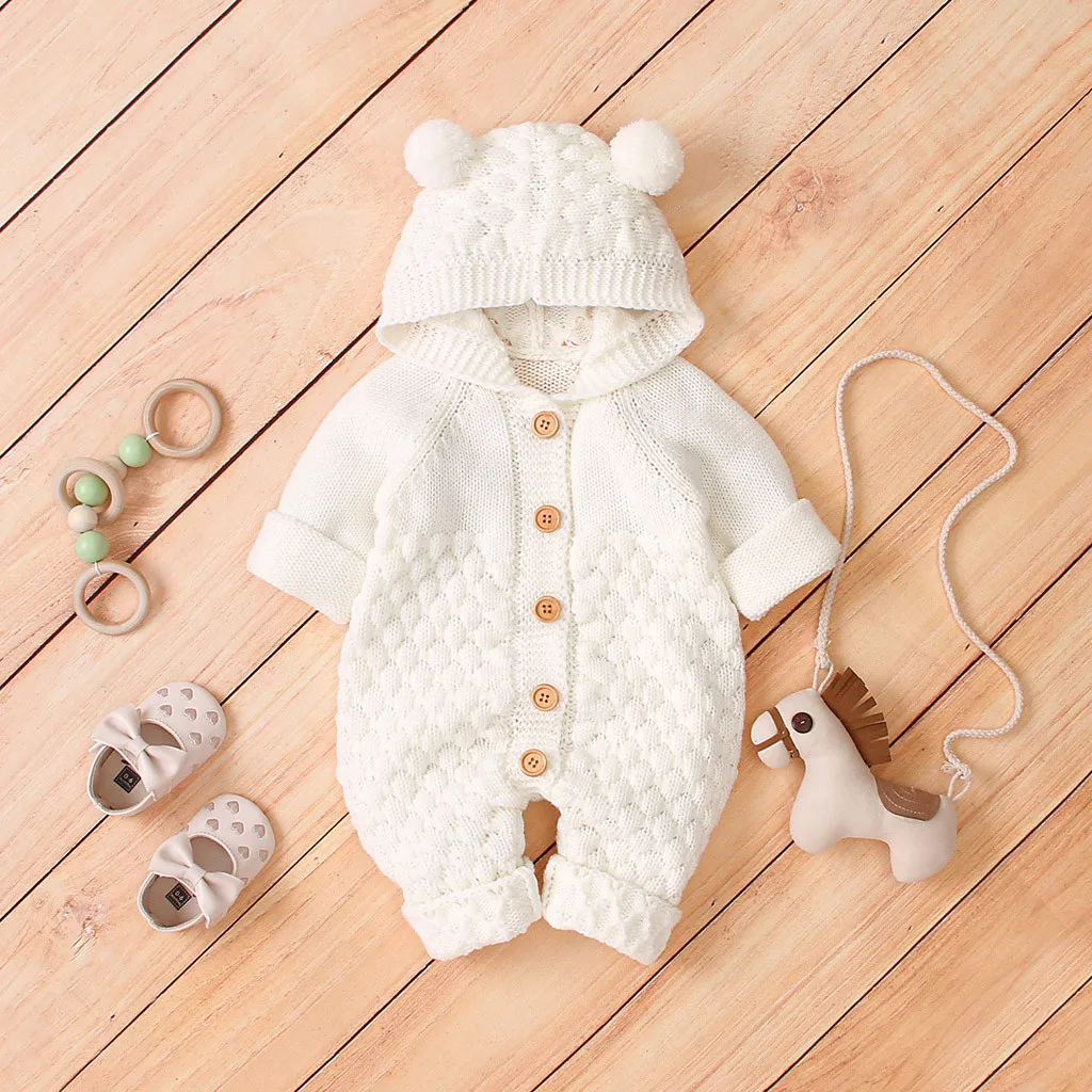 Newborn Infant Baby Girl Boy Winter Warm Coat Knit Outwear Hooded Jumpsuit