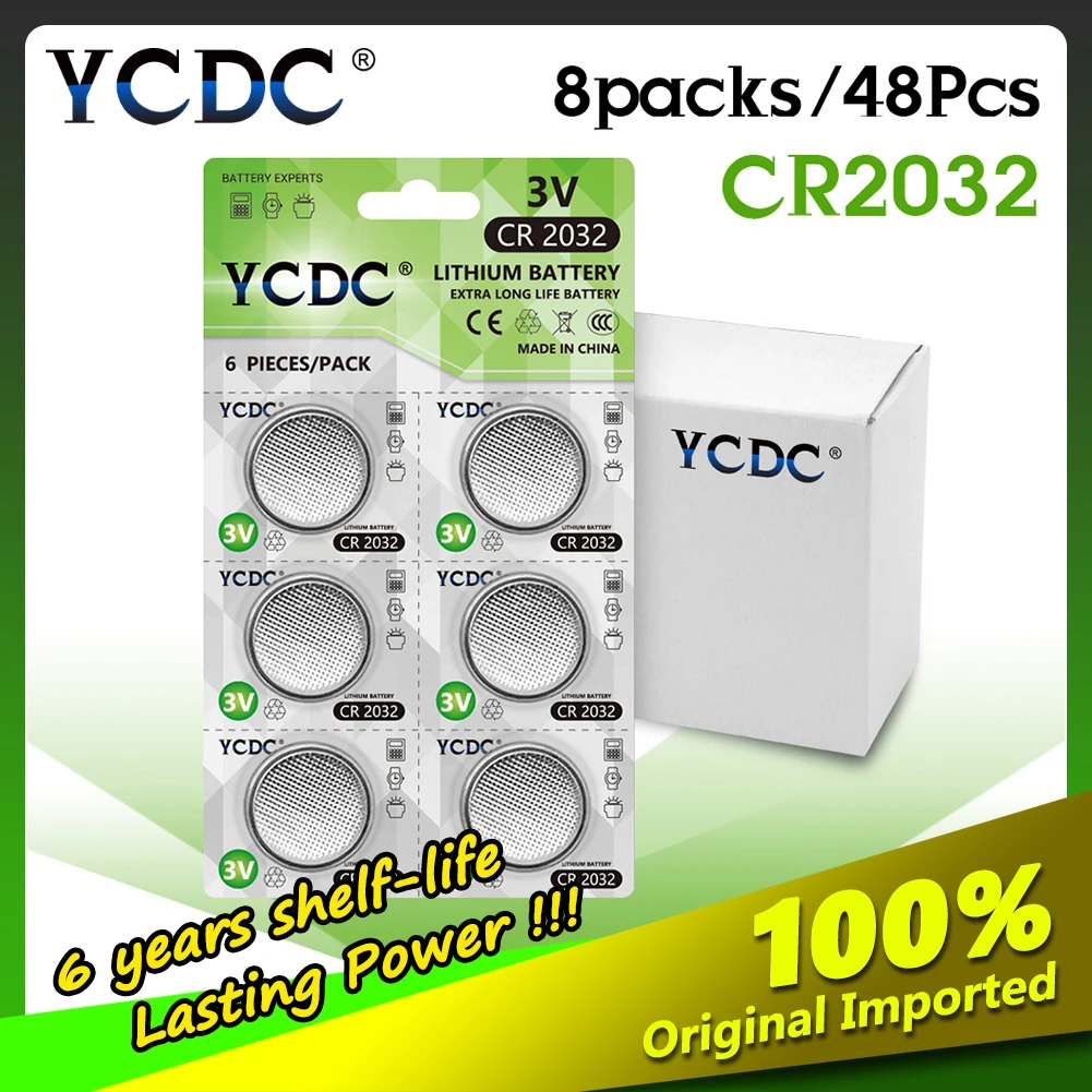 YCDC CR2032 48 шт/8 карт 3V плоская круглая батарея CR 2032 литиевая батарея таблеточного типа для DL2032 5004LC KL2032 для дистанционными часами электронный
