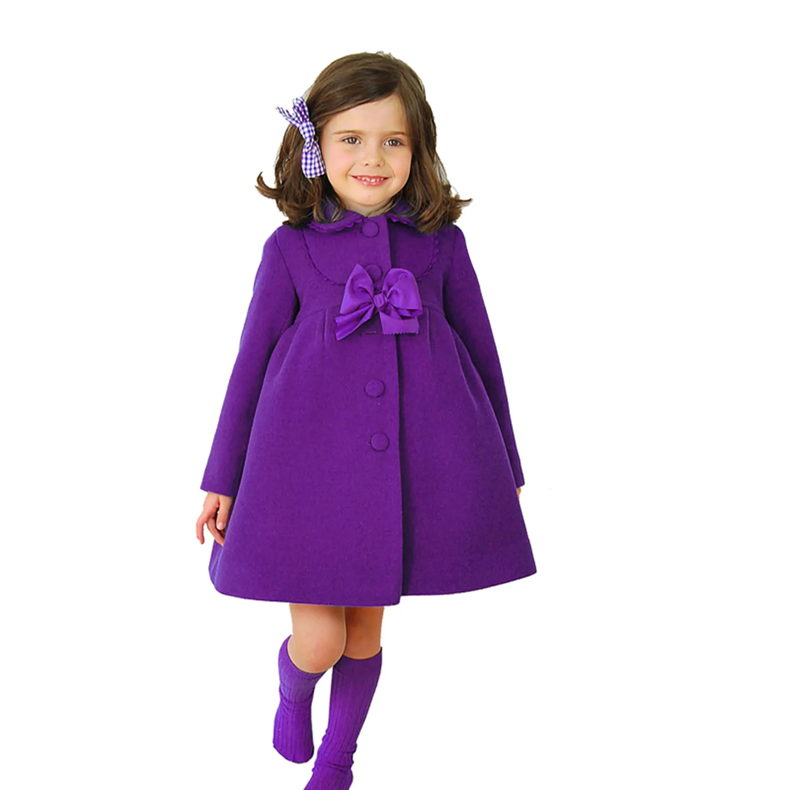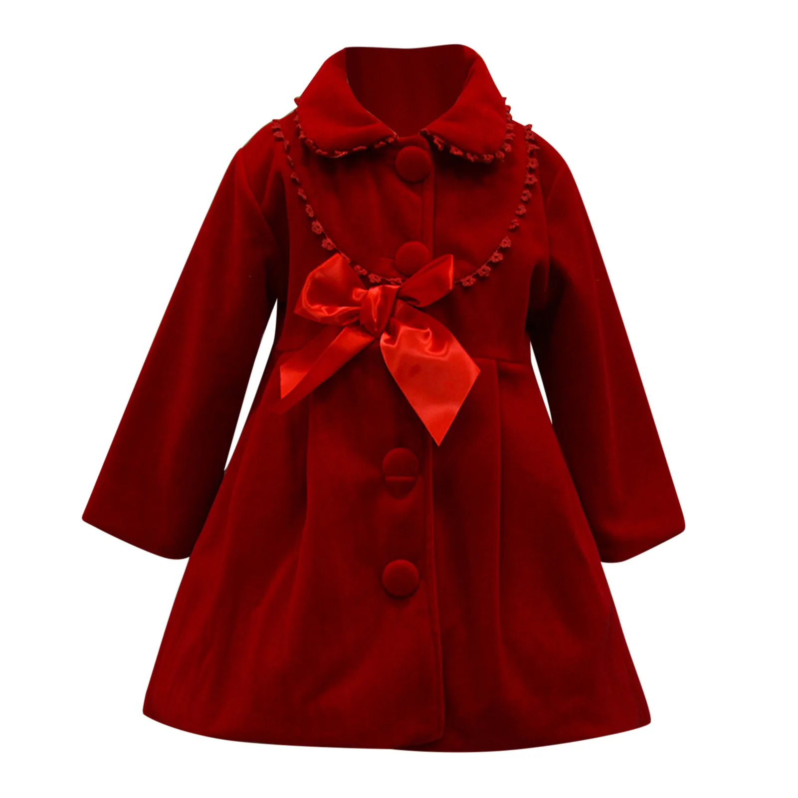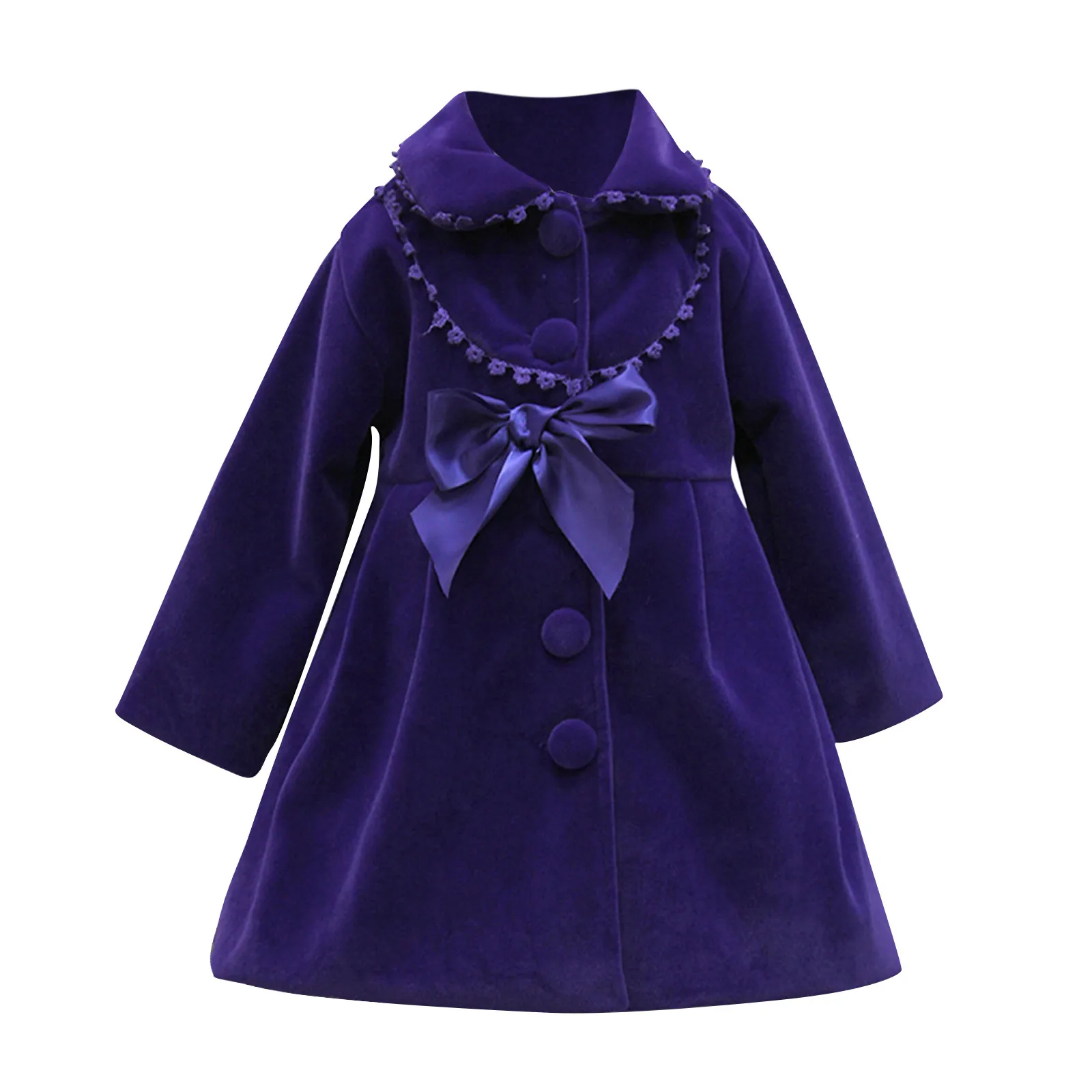 Куртка для маленьких девочек, осенне-зимняя ветрозащитная однотонная шерстяная куртка с бантом, теплая верхняя одежда, пальто для девочек, гофрированное, с пуговицами
