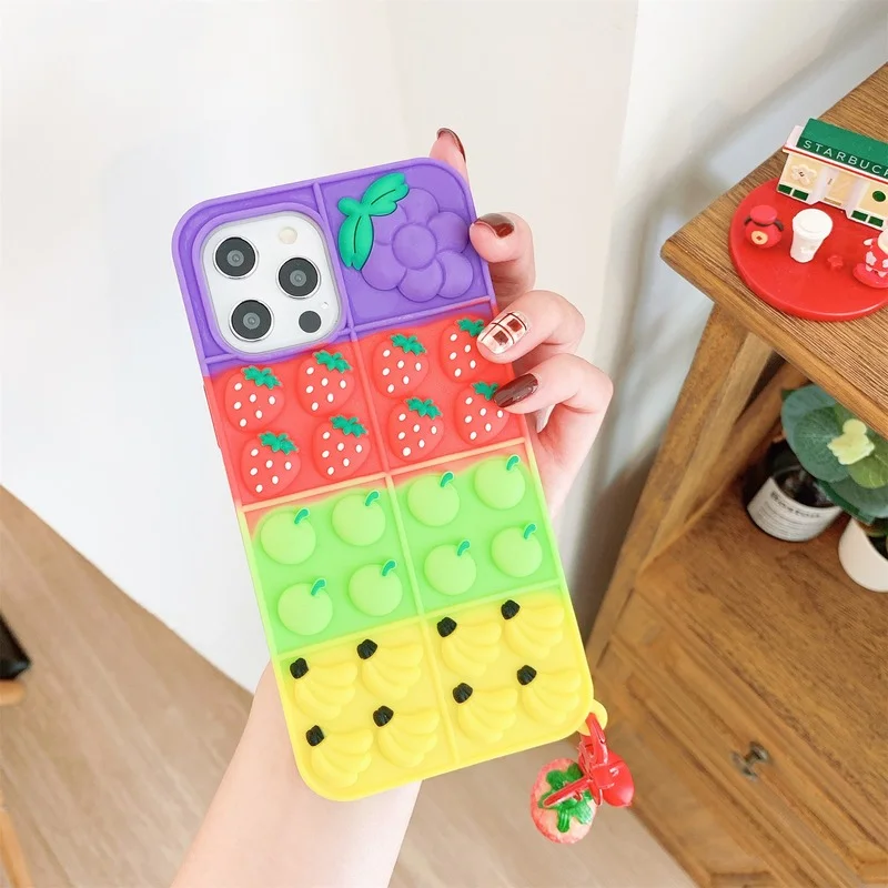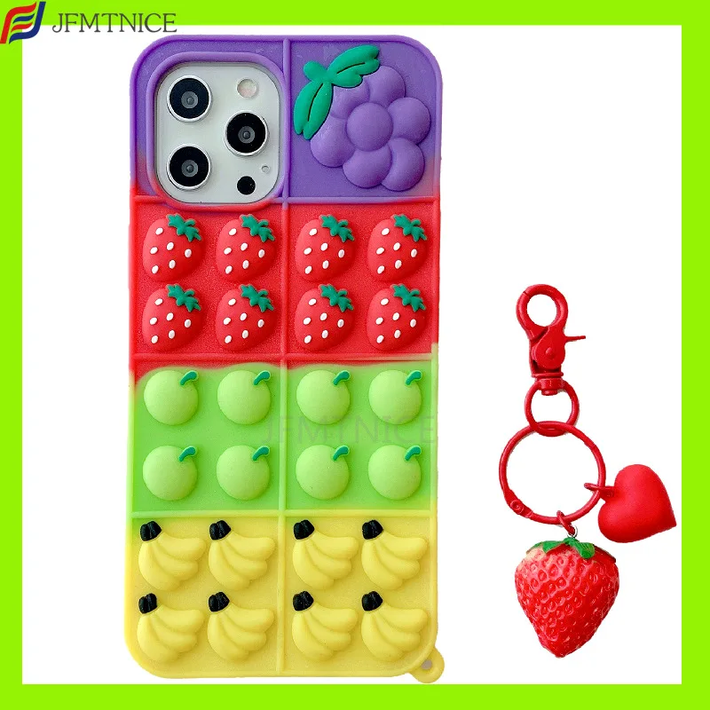 Милый мультяшный 3D-чехол для телефона с подвеской в виде фрукта и клубники для IPhone 11, 12 Pro, Max, X, XR, XS, Max, 6, 6s, 7, 8 Plus, мягкий чехол для снятия стресса