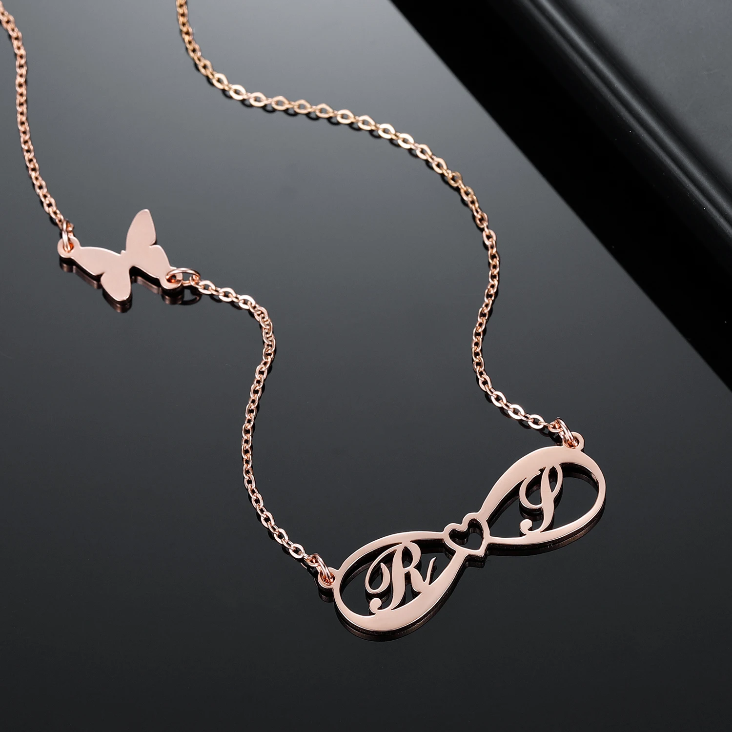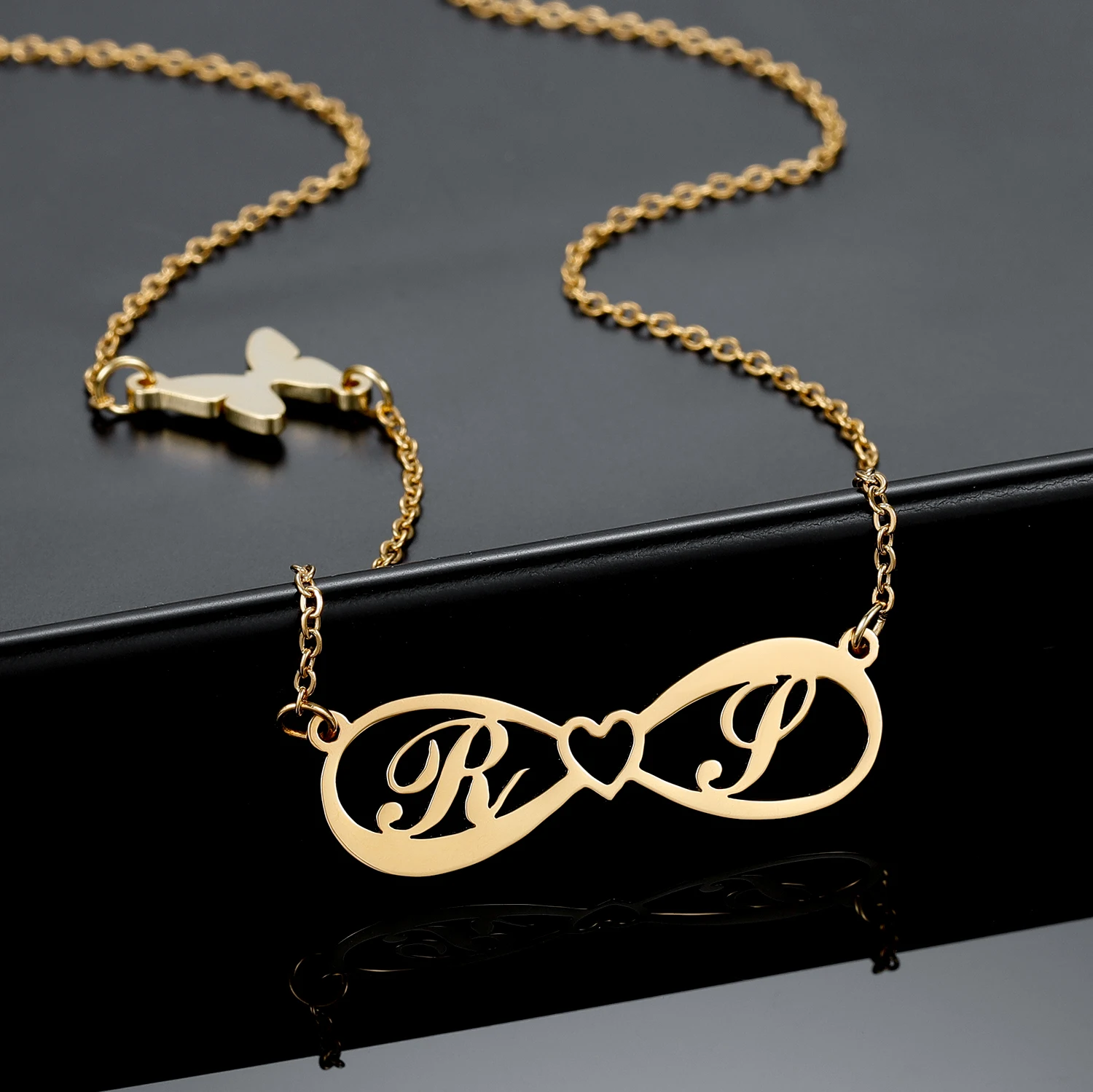 Персонализированное ожерелье с именем бесконечности, позолоченная цепочка из нержавеющей стали 18 карат, индивидуальная подвеска с буквами и бабочками, ювелирные изделия