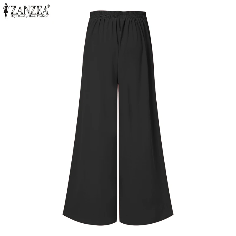 Повседневные брюки ZANZEA, брюки с широкими штанинами, Капри, женские весенние однотонные Костюмные брюки 2021, женские брюки со средней талией