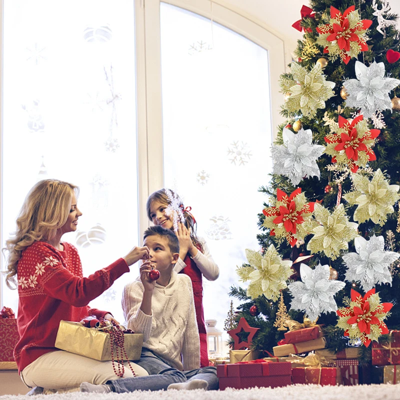 5 шт., искусственные рождественские цветы, 14 см