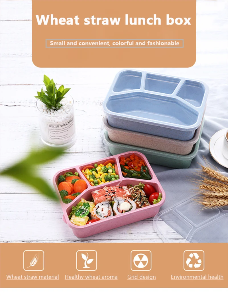 Ланч-бокс из пшеничной соломы, коробка бэнто в японском стиле для студентов, 4 коробки, контейнеры для еды, микроволновой печи, офисные работники, коробка для еды, чехол для фруктов