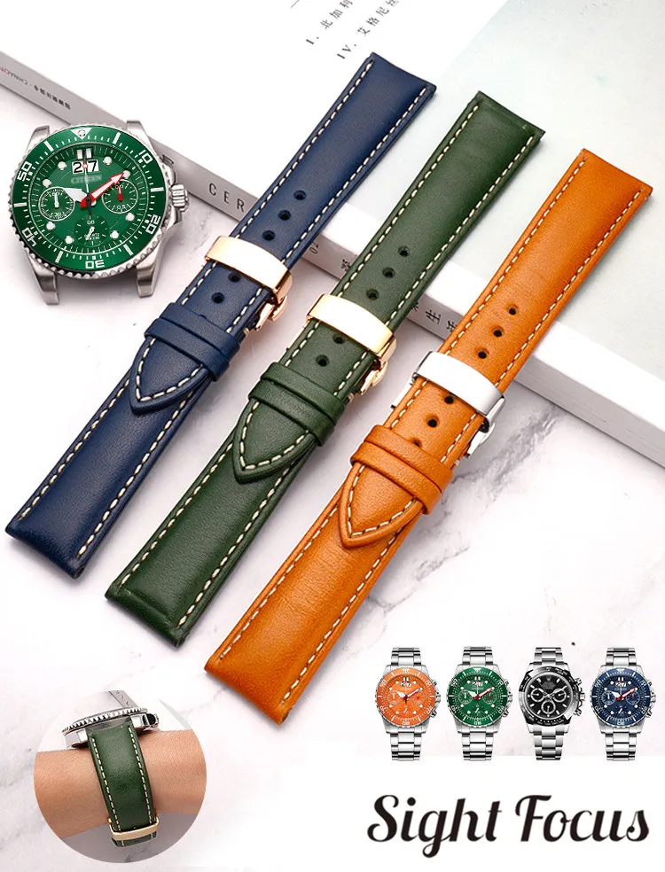 Ремешок из натуральной кожи для мужских часов, универсальный браслет для часов RX Submariner Daytona, Rolex, 18 19 20 21 22 мм