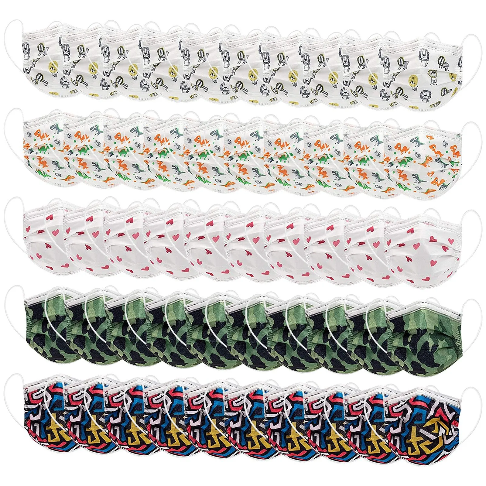 Многоразовая дышащая маска с принтом из спанлейса для детей, 50 шт.