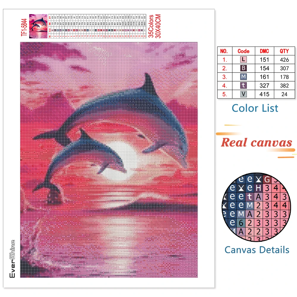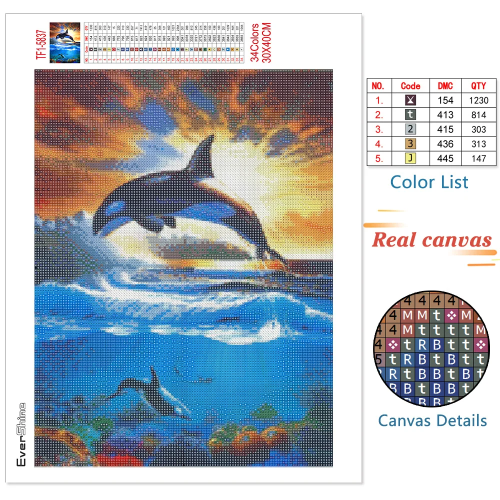 EverShine Алмазная вышивка картина заката Стразы DIY алмазная живопись пейзаж Ручная работа Дельфин Стразы настенное искусство