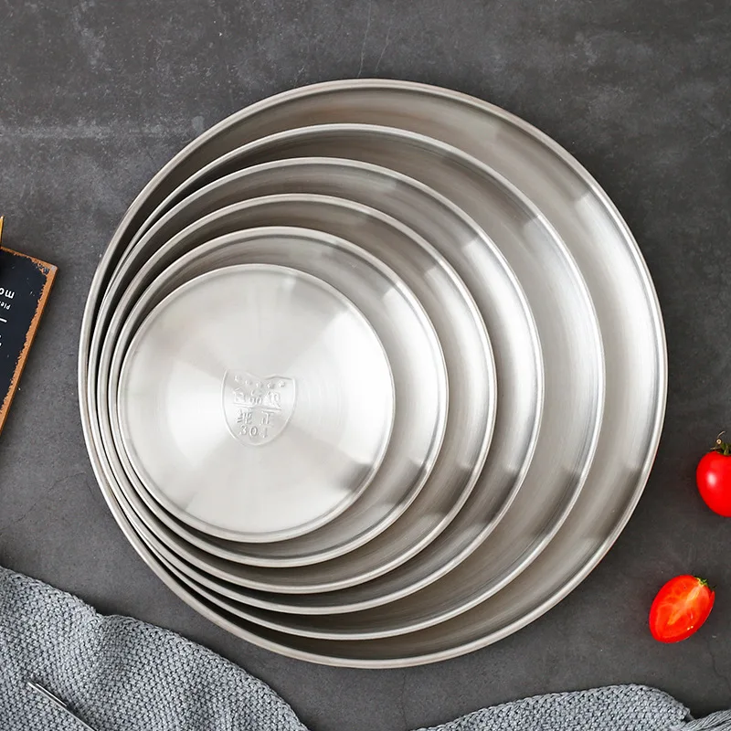 Утолщенная круглая тарелка для барбекю из нержавеющей стали 304, Золотая десертная тарелка, Западная тарелка для еды, тарелка для барбекю