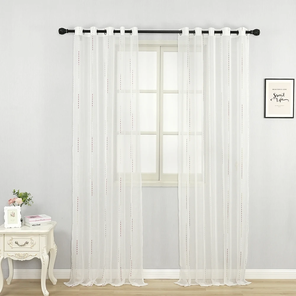 Белые полосатые занавески из искусственного льна, занавески с вышив...