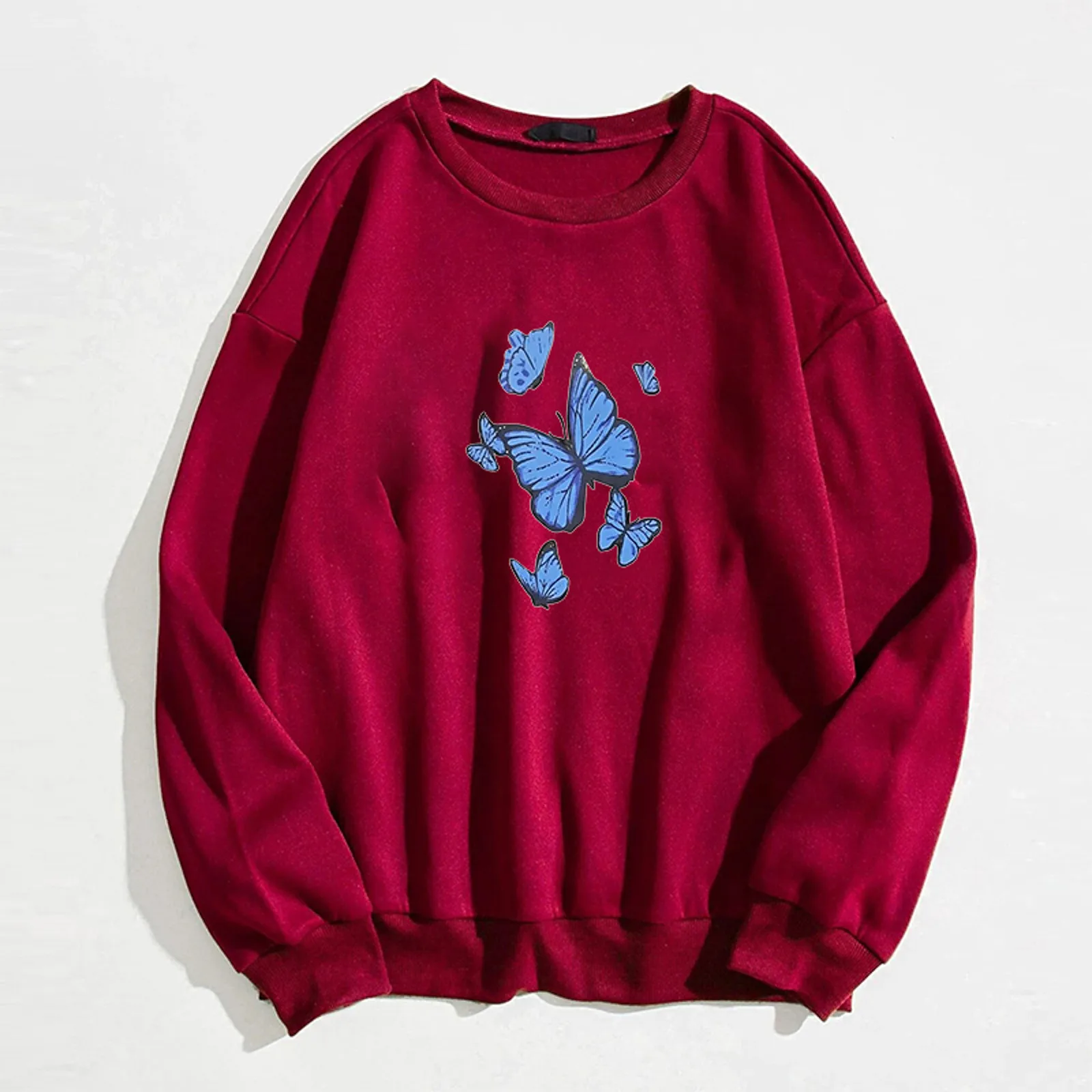 Свитшот женский с длинным рукавом, готический пуловер с принтом бабочек, повседневная винтажная верхняя одежда в стиле Харадзюку, Y2k, на осень