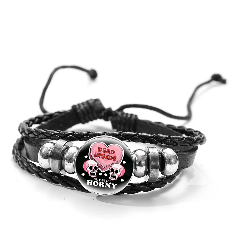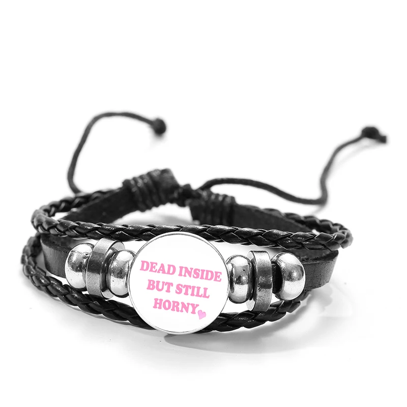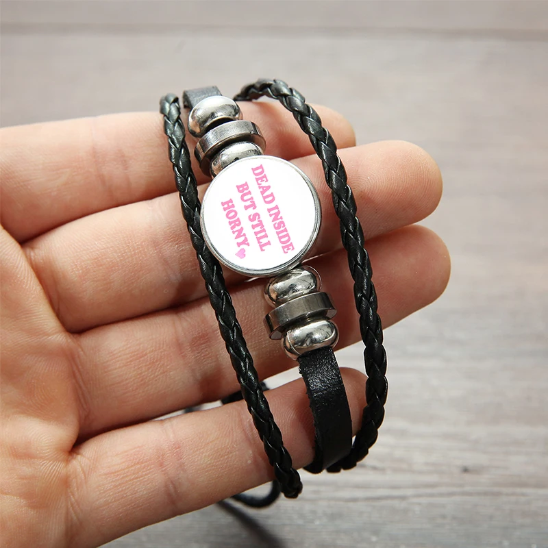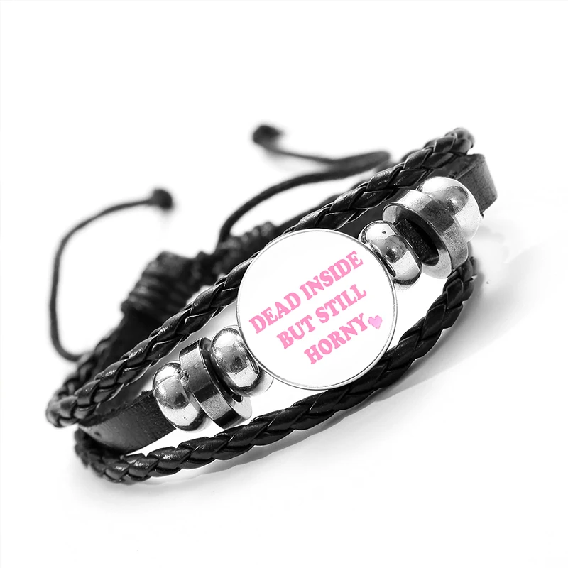 Цитаты мертвый внутри, но все еще ороговевший кожаный женский браслет, готические браслеты, плетеные веревочные очаровательные браслеты, ювелирные изделия в подарок