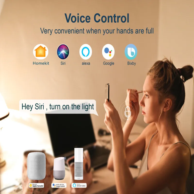 Освободите руки с помощью простых голосовых команд для Alexa/для Google Assistant/для Siri. Пользователи Apple мобильный телефон не должны загружать специальное приложение и напрямую использовать приложение для Homekit, что очень удобно