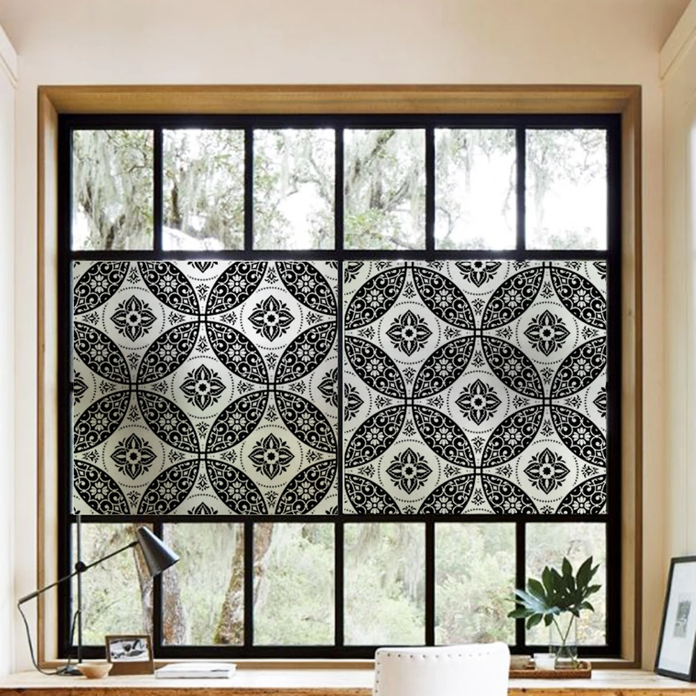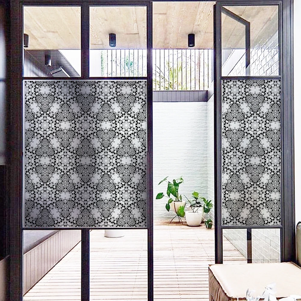 Витражная декоративная оконная пленка статическая Наклейка на стекло термоконтроль виниловые оконные наклейки для домашней двери Черно-белая Мандала