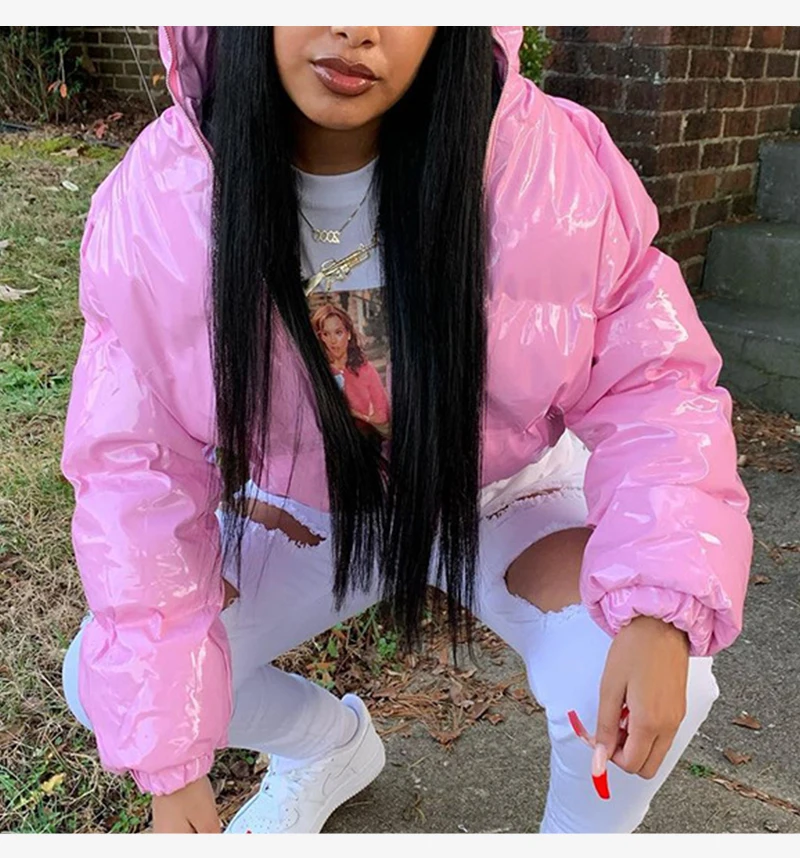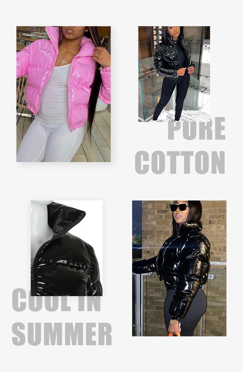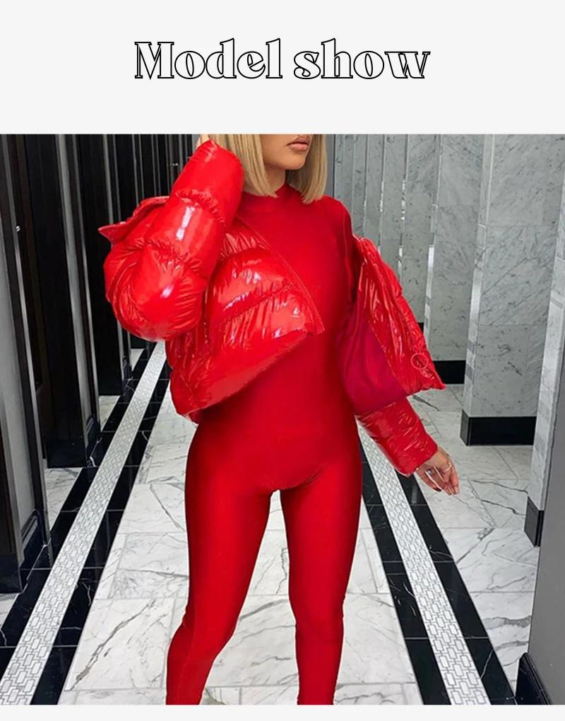 Пуховик женский из искусственной кожи, на молнии, с воротником-стойкой