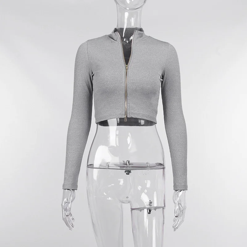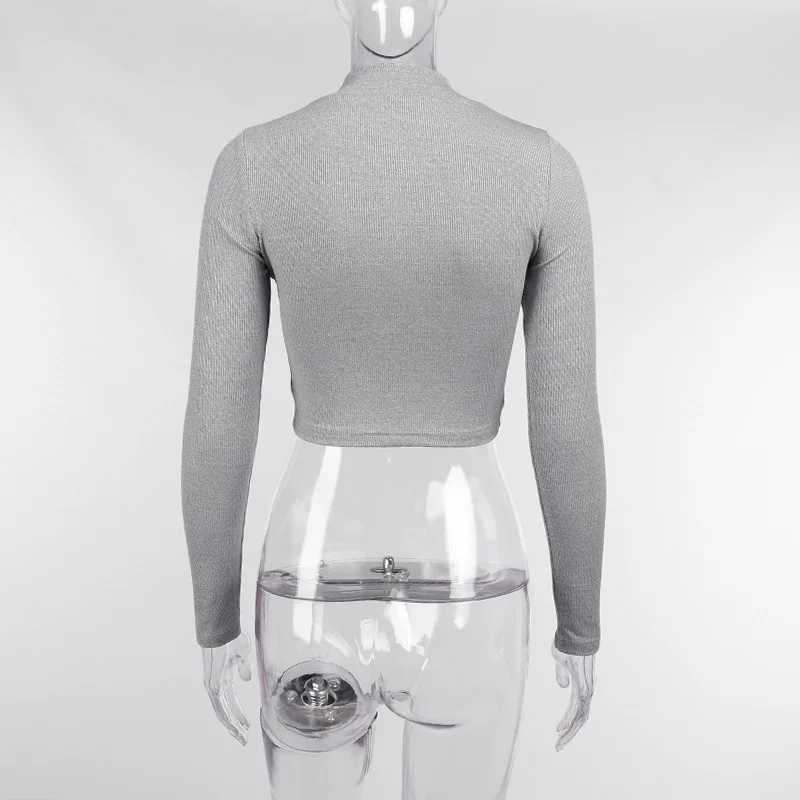 Женские футболки на молнии Sibybo, черные топы с длинным рукавом и воротником-стойкой, 2021