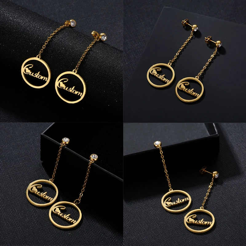 Индивидуальные Золотые круглые серьги из нержавеющей стали для женщ...