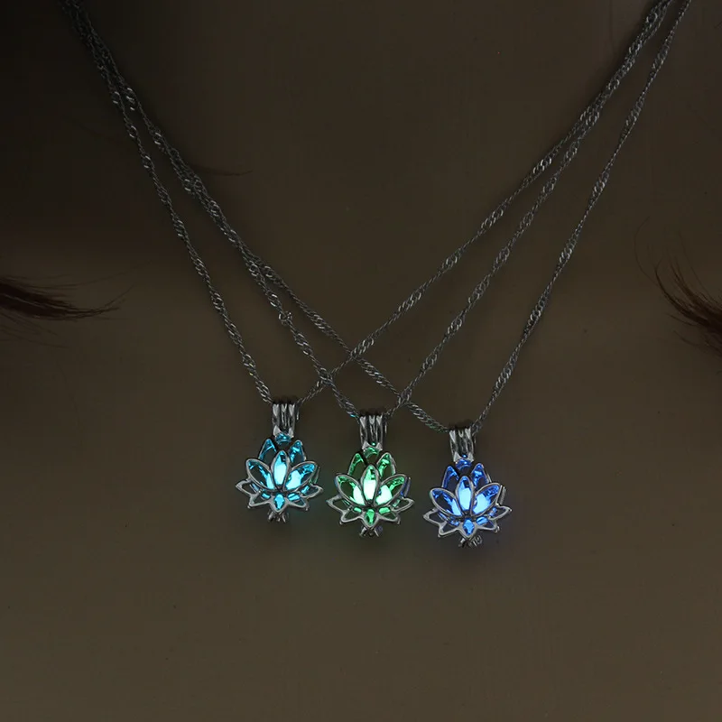 Светящиеся светящиеся ожерелья с подвеской в виде лотоса для женщин...