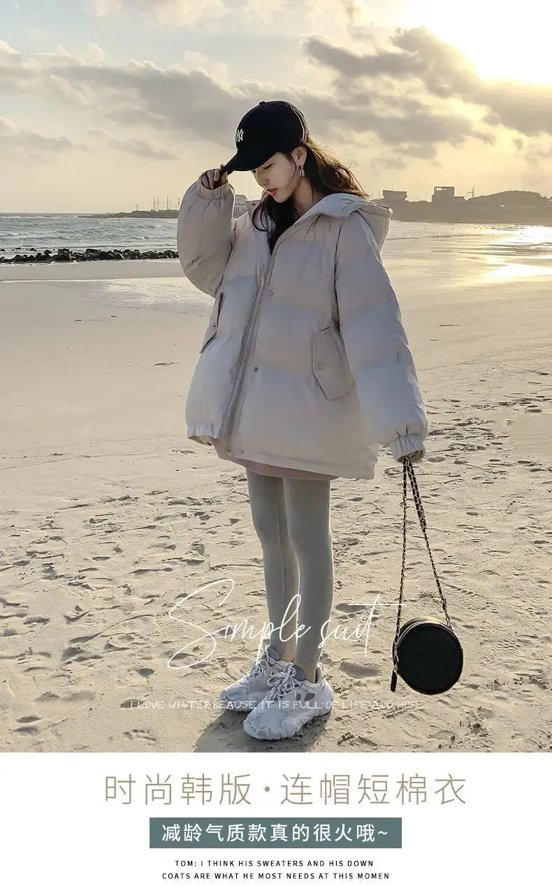 Куртка женская зимняя короткая, с капюшоном, хлопковая, свободная, ...