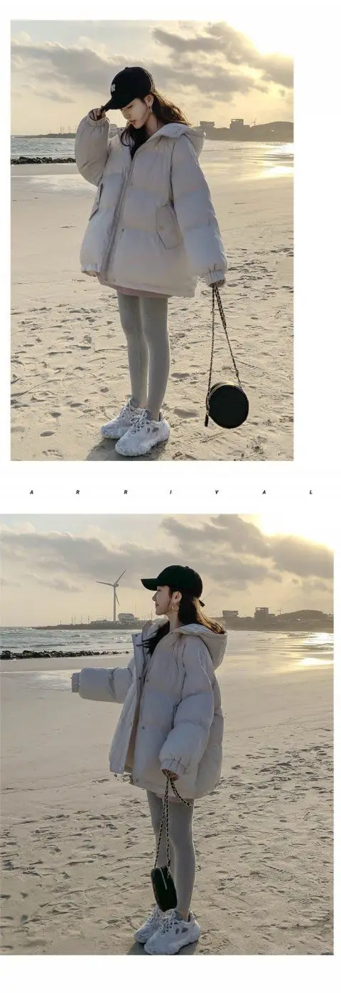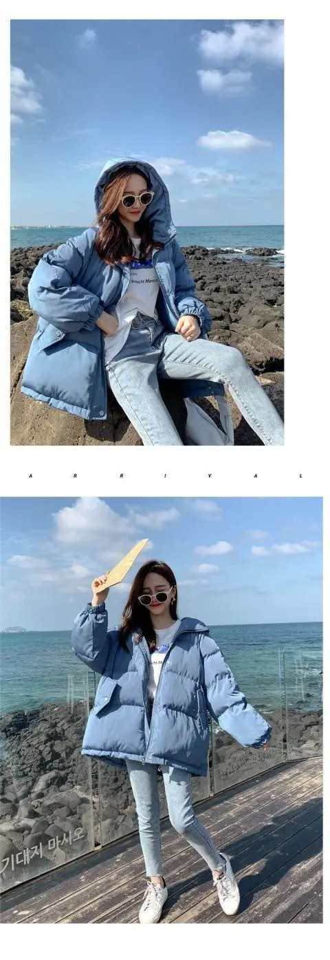 Женские зимние куртки-пуховики оверсайз, корейские свободные пальто...