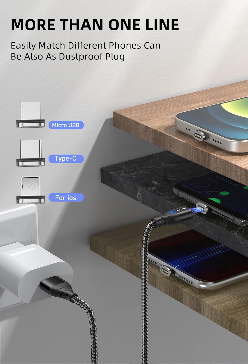 Магнитный кабель USLION с поворотом на 540 градусов, со светодиодно...
