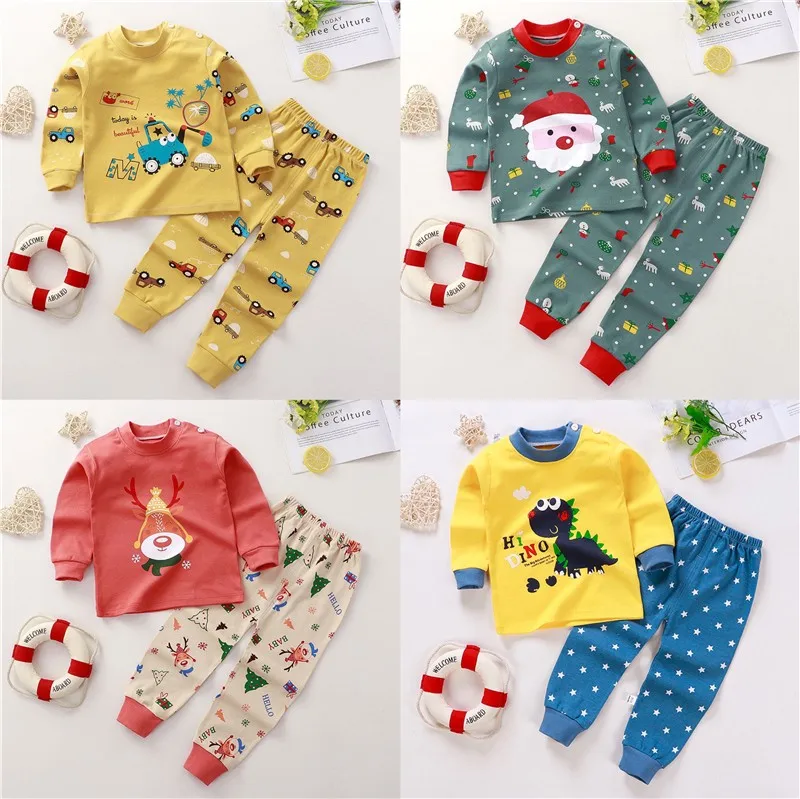 Детский пижамный комплект 2022 года, футболка с длинным рукавом и брюки, костюм одежды для малышей, мальчиков и девочек, Рождественская одежда, домашняя одежда, комплект для малышей