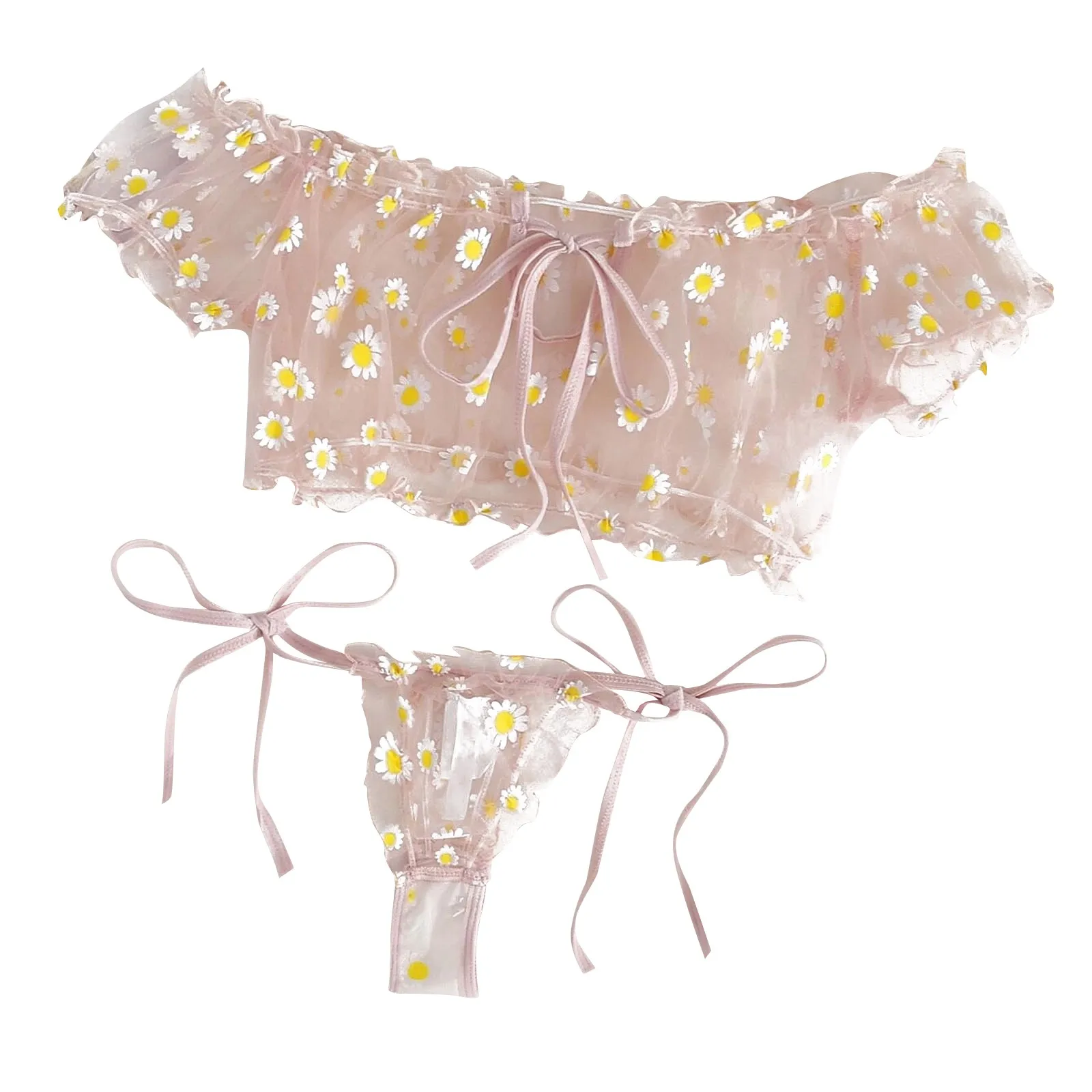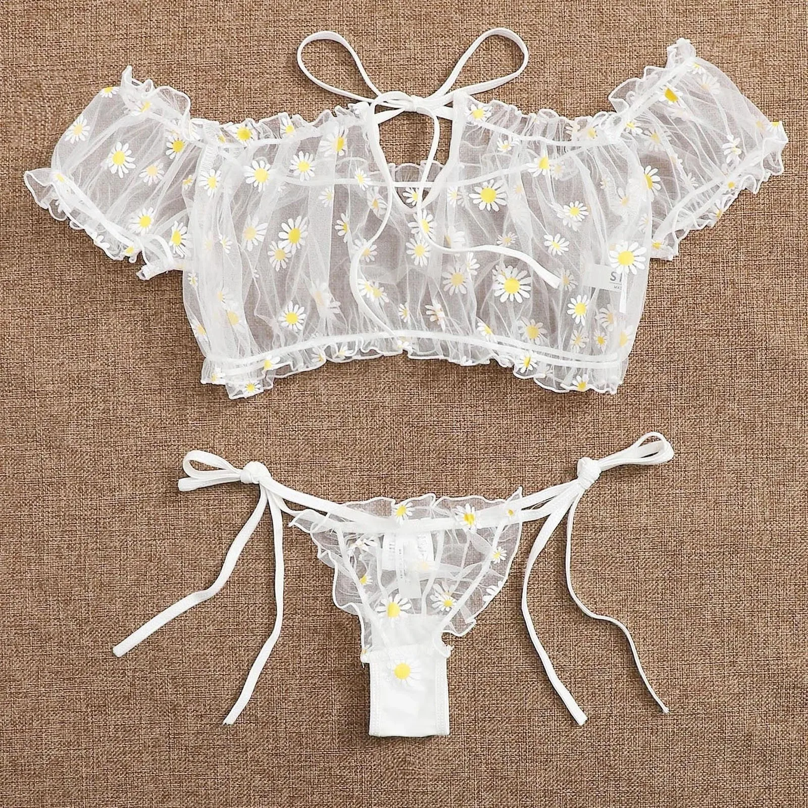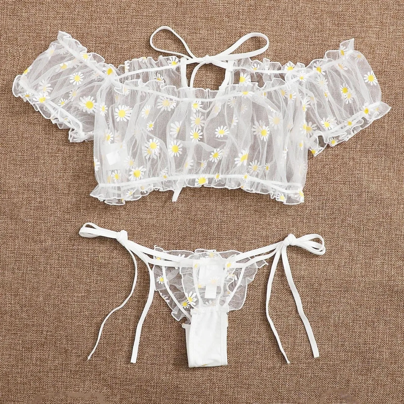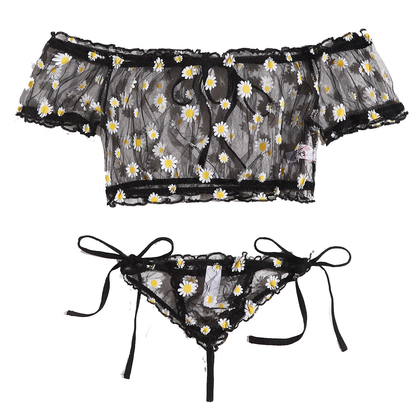 Цветочный кружевной прозрачный комплект нижнего белья, сексуальное ...