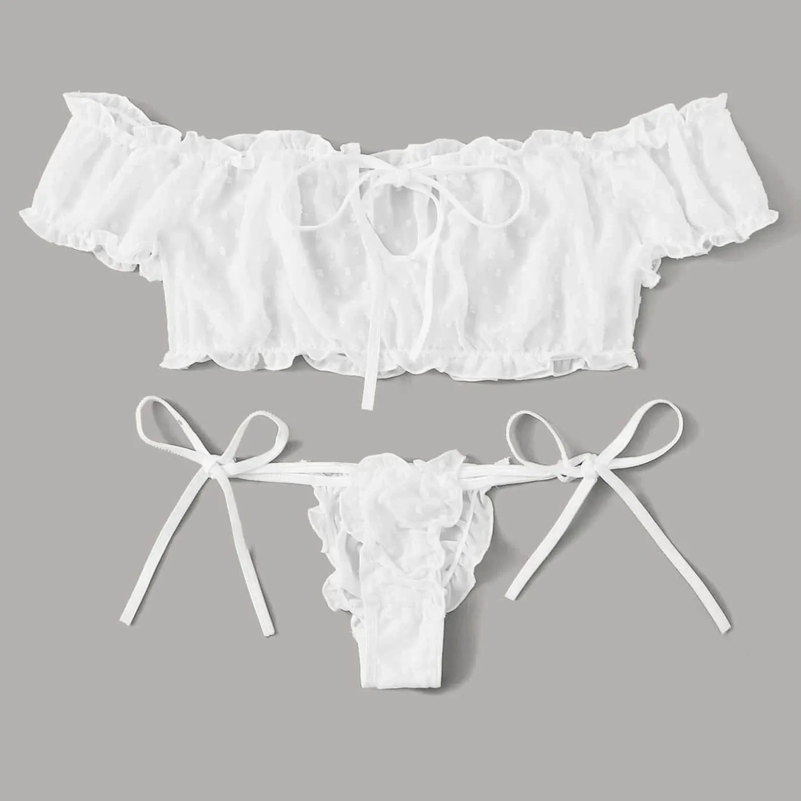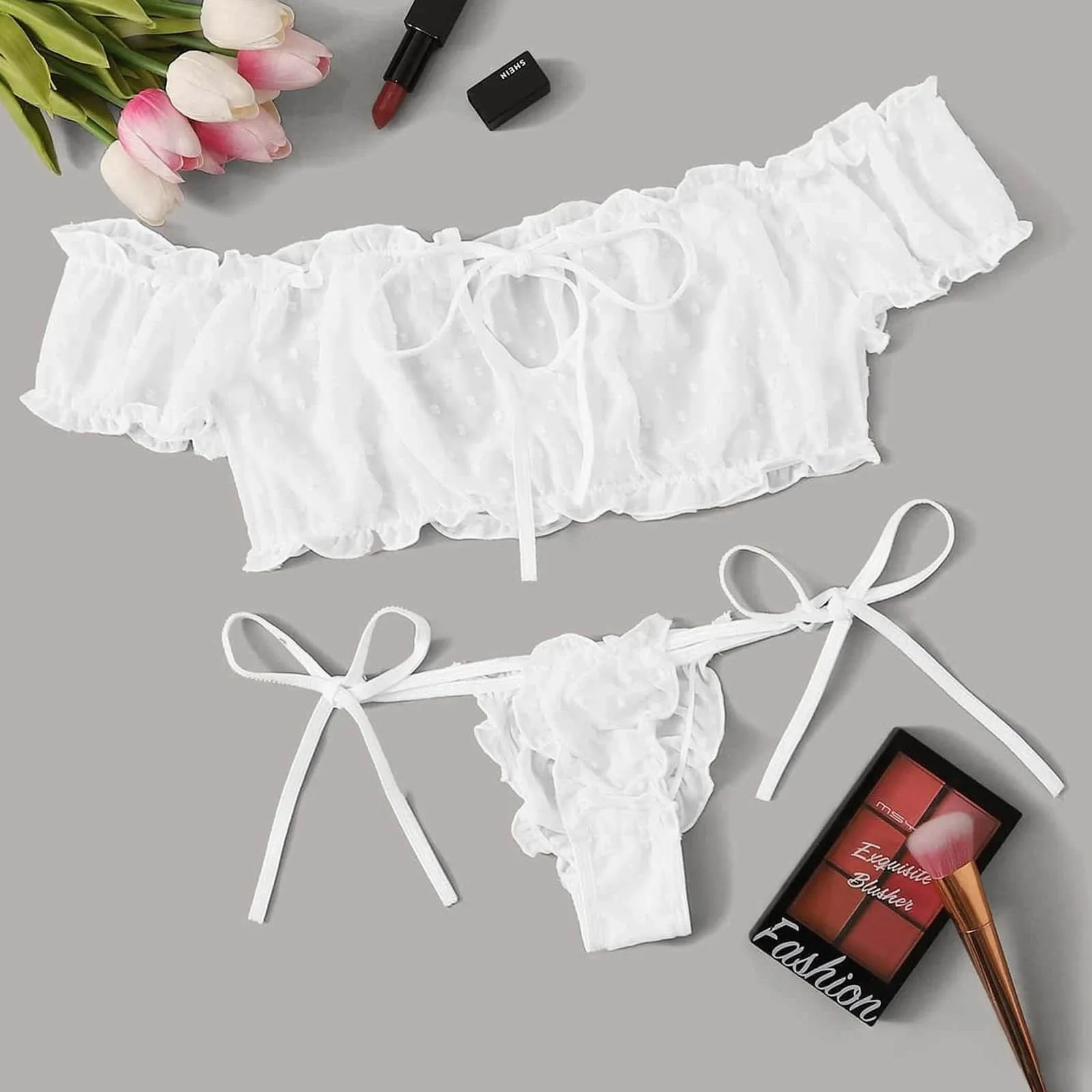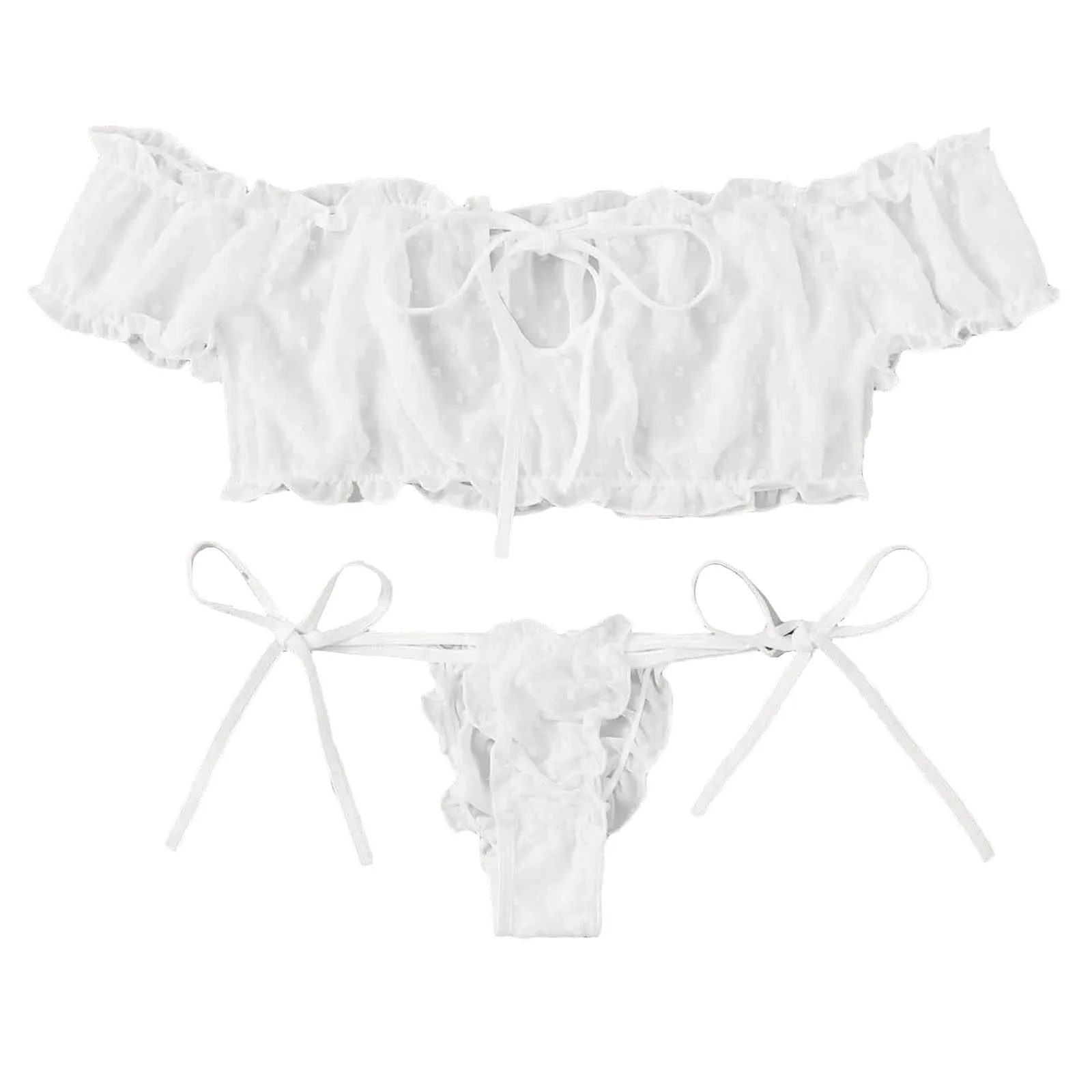 Комплекты нижнего белья для женщин, большие размеры, M-3XL бюстгальтер на одно плечо, топ, сексуальные прозрачные стринги с бантом, Эротическое Белье для сна