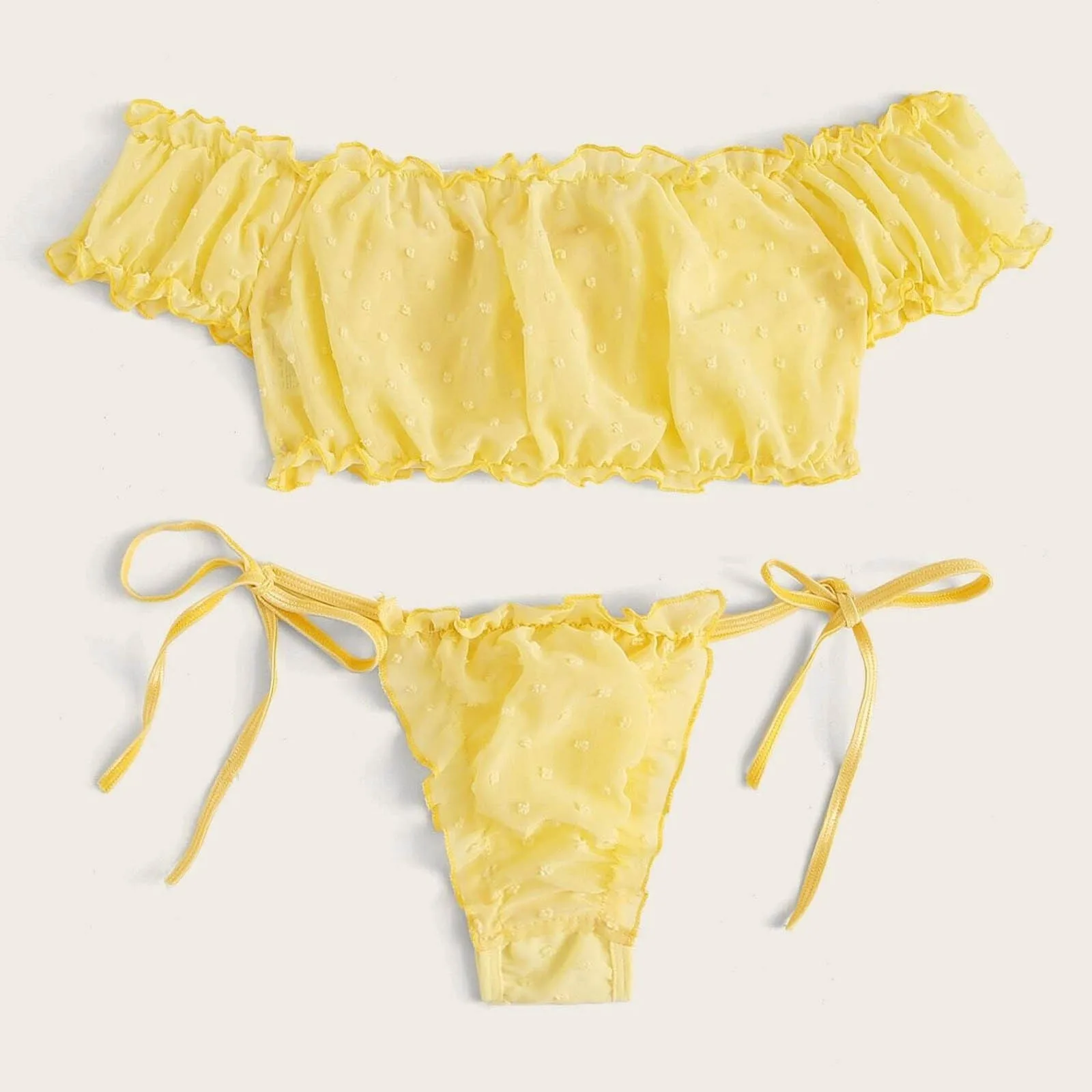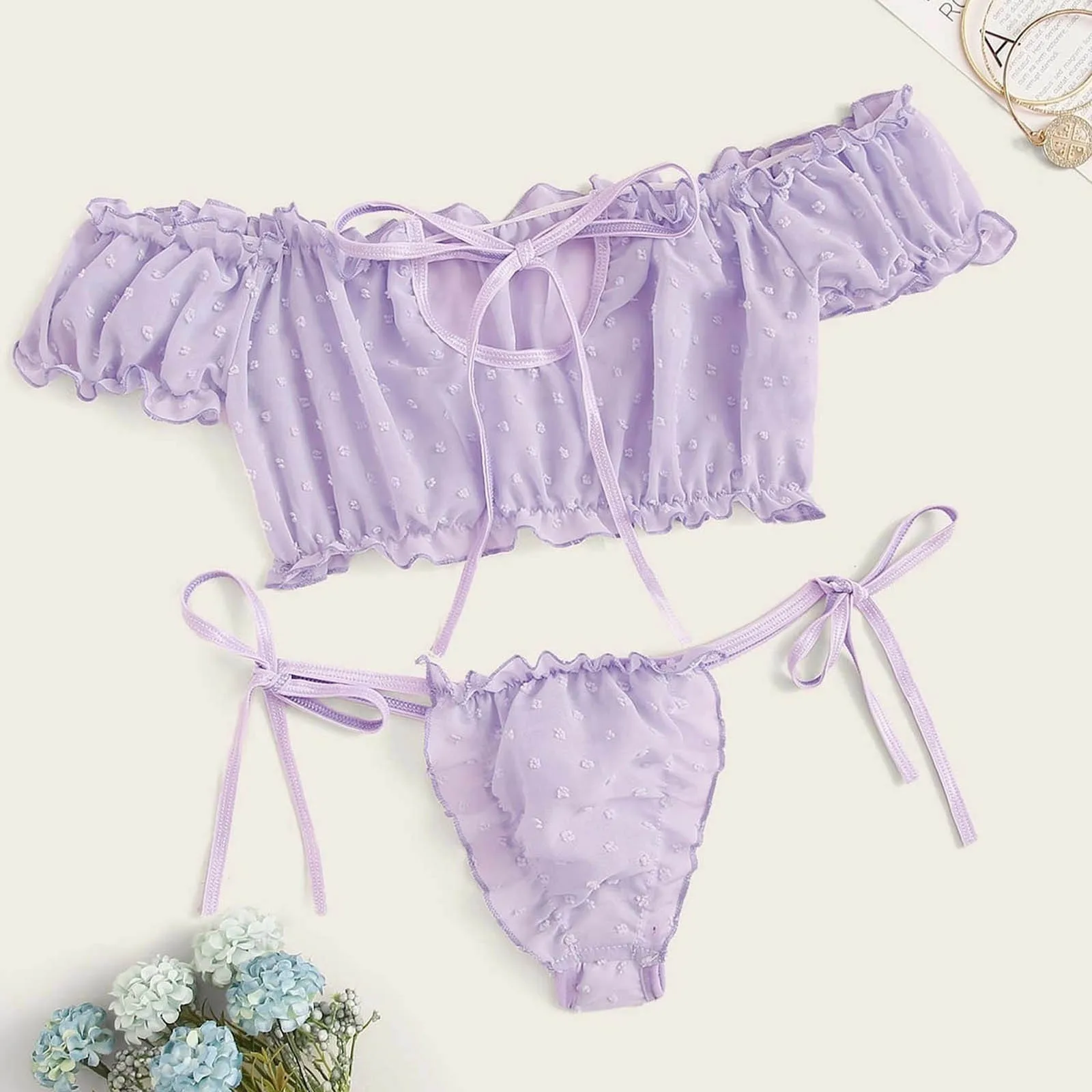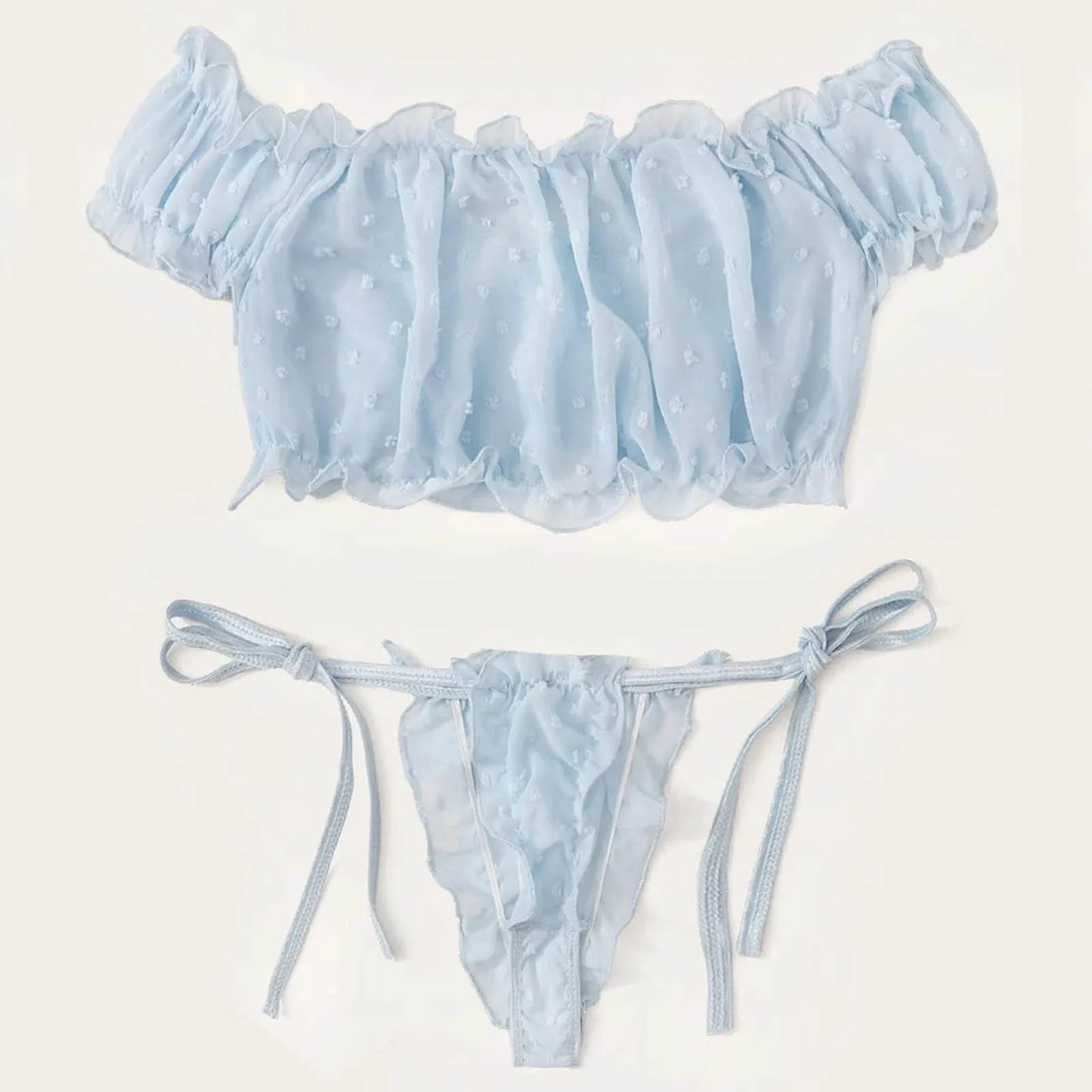 Комплекты нижнего белья для женщин, большие размеры, M-3XL бюстгальтер на одно плечо, топ, сексуальные прозрачные стринги с бантом, Эротическое Белье для сна