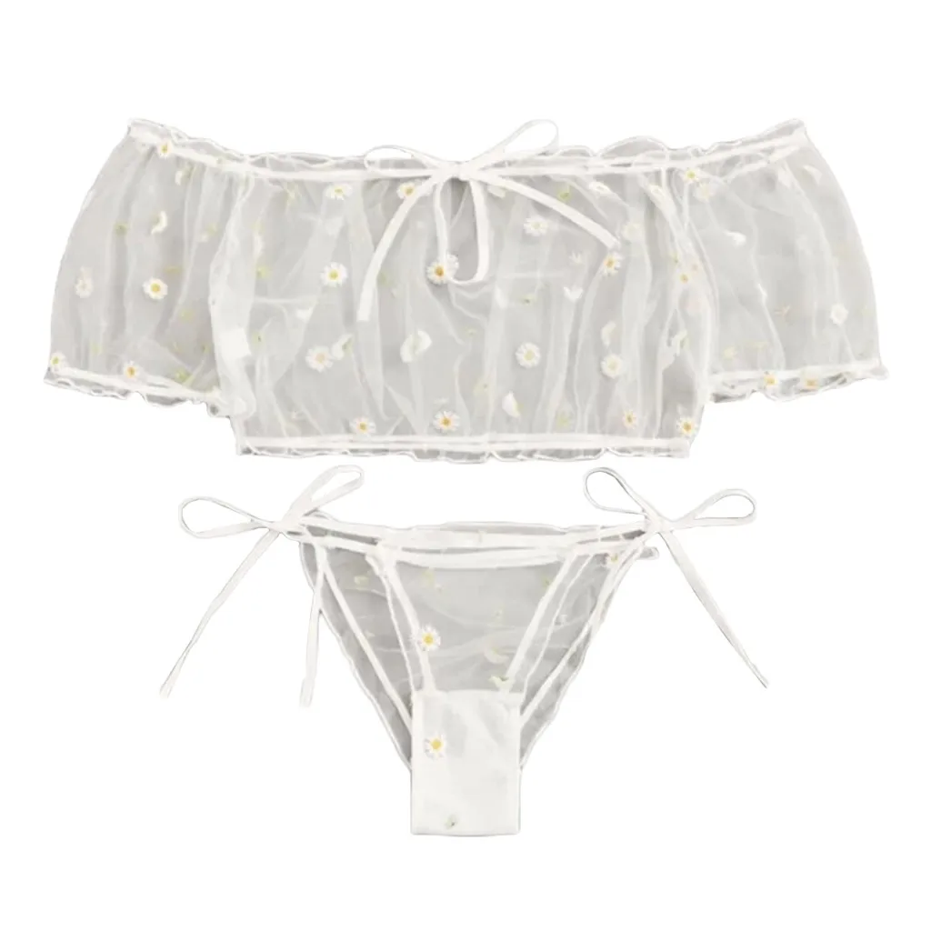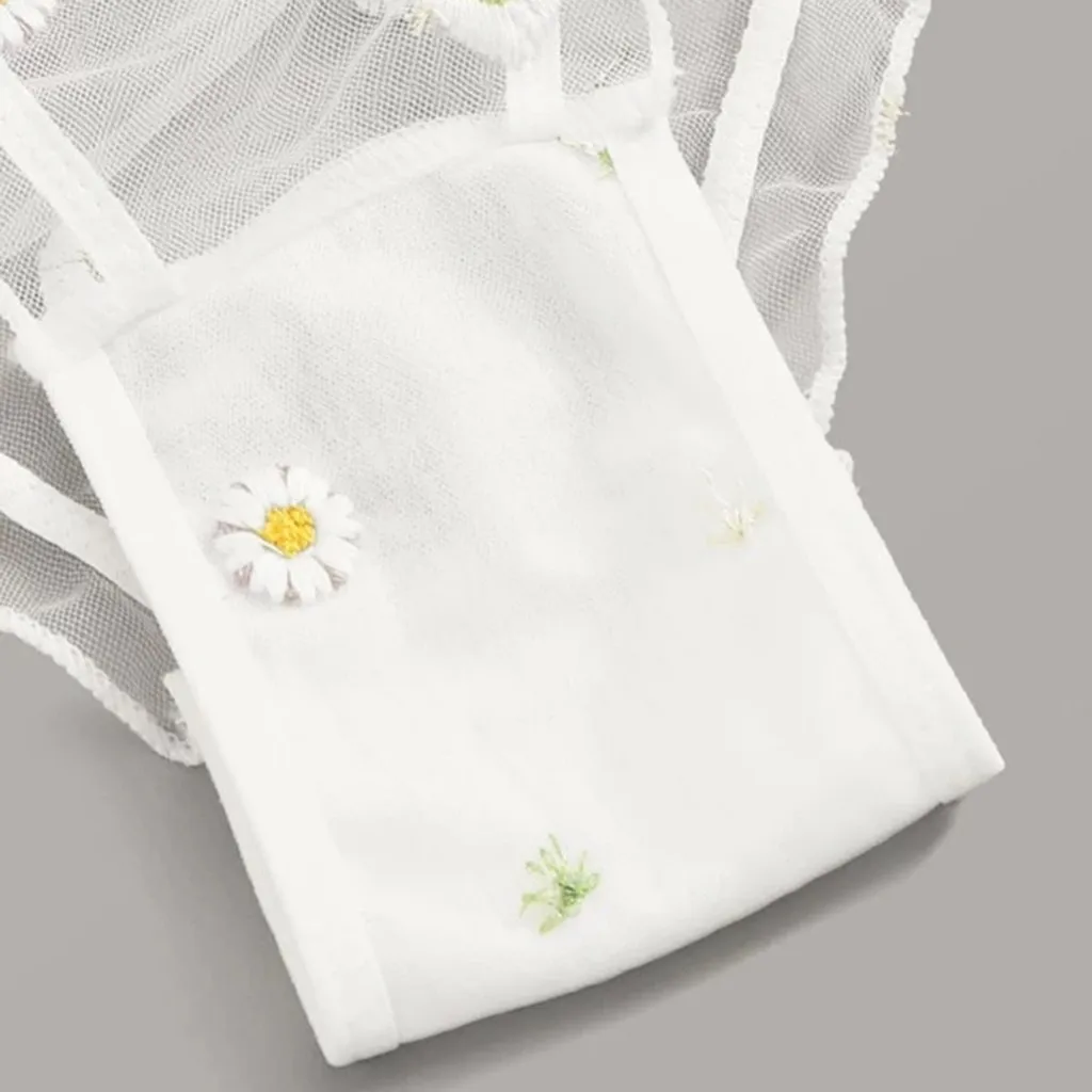 Комплект женского нижнего белья с цветочной вышивкой и бюстгальтером
