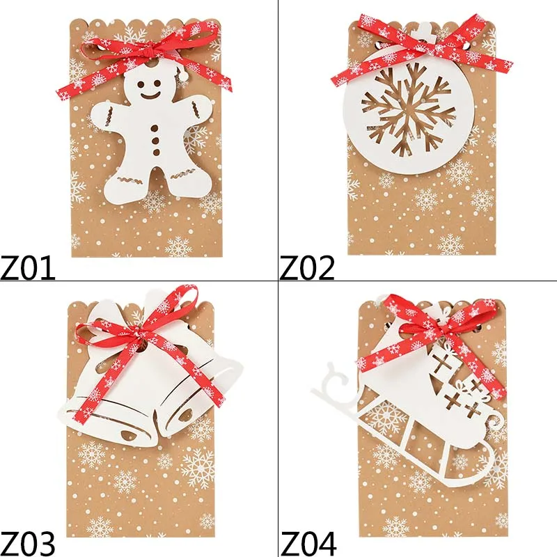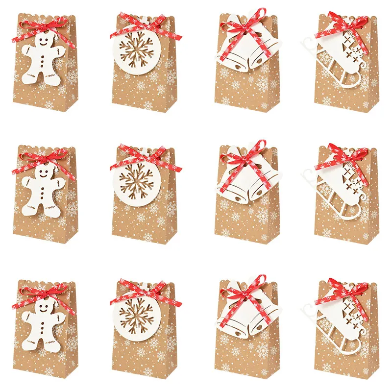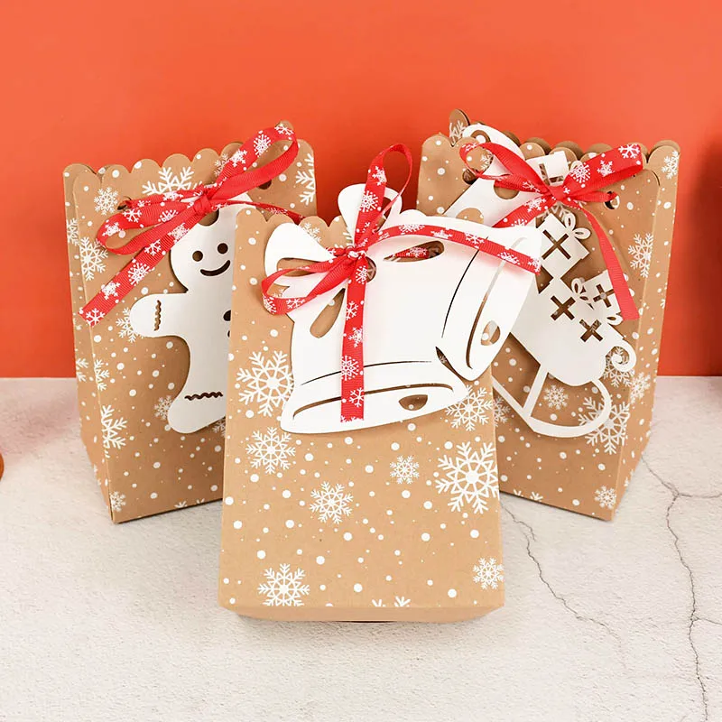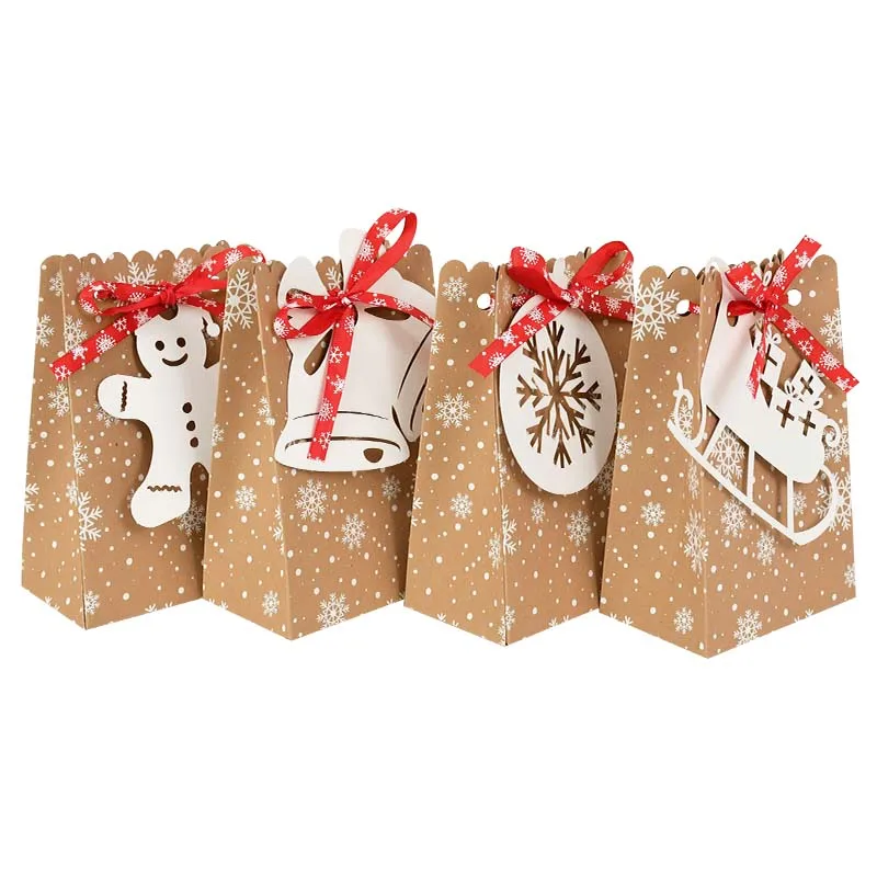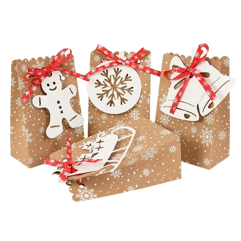 4 шт.лот Рождественская коробка из крафтовой бумаги для конфет пече...