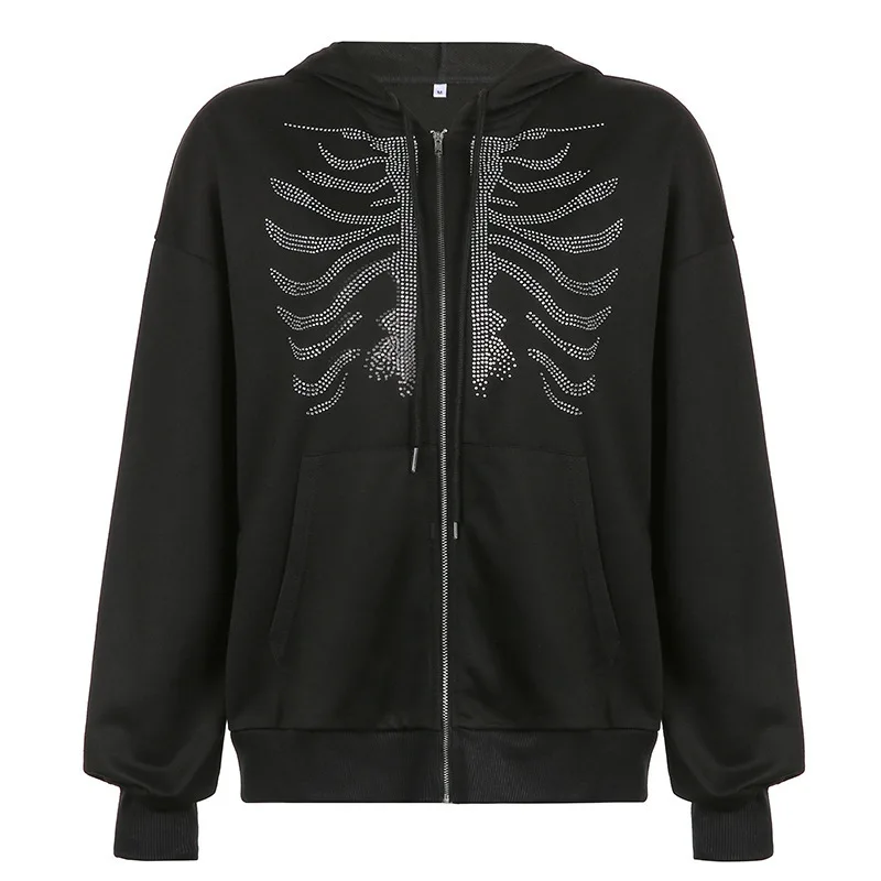 Номер моделиRhinestone Skeleton Zip Up Oversized Hoodie Retro Clothes Pullover